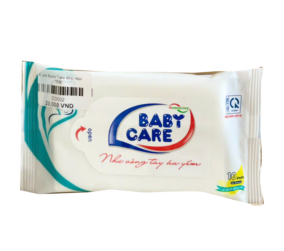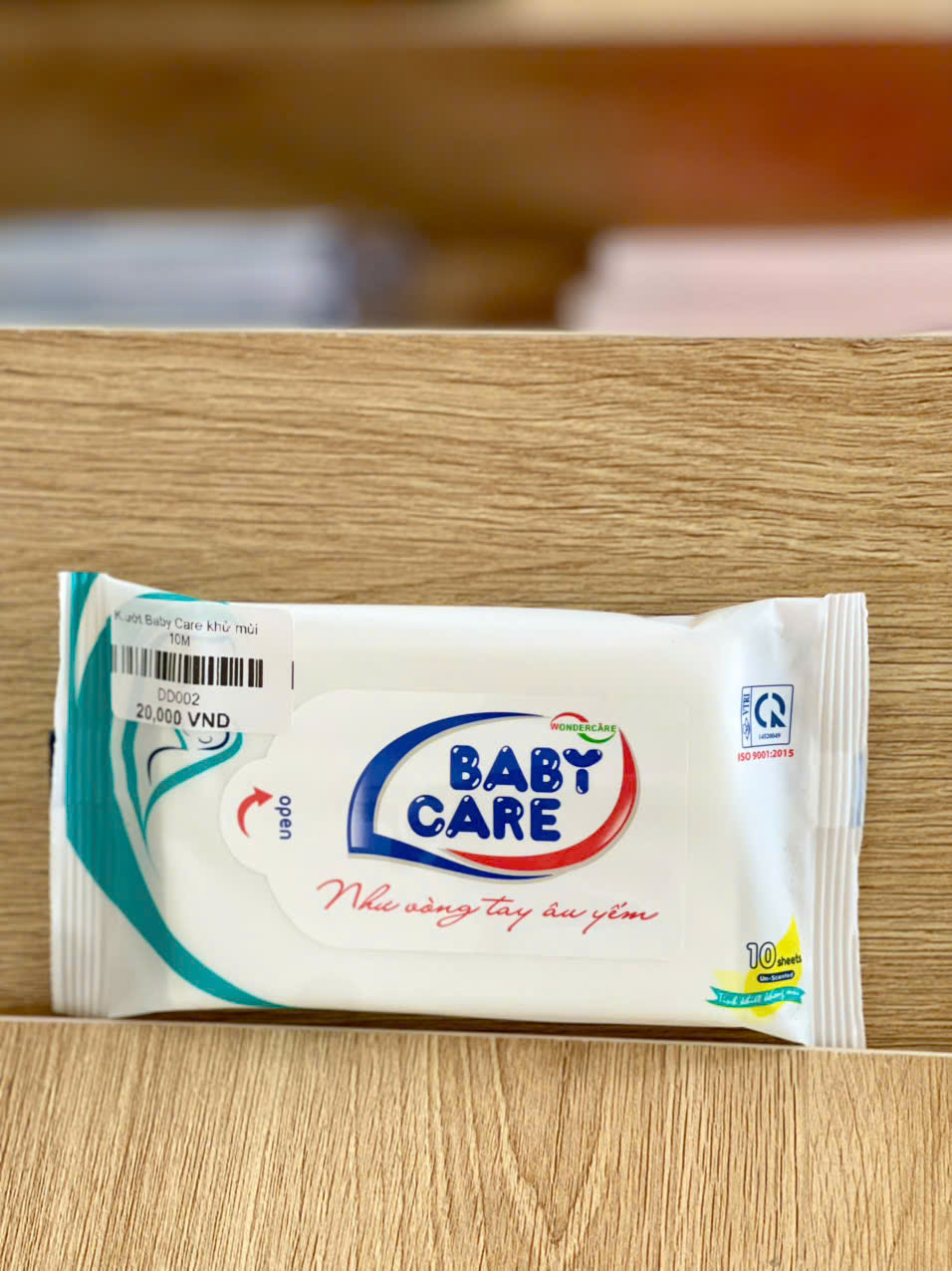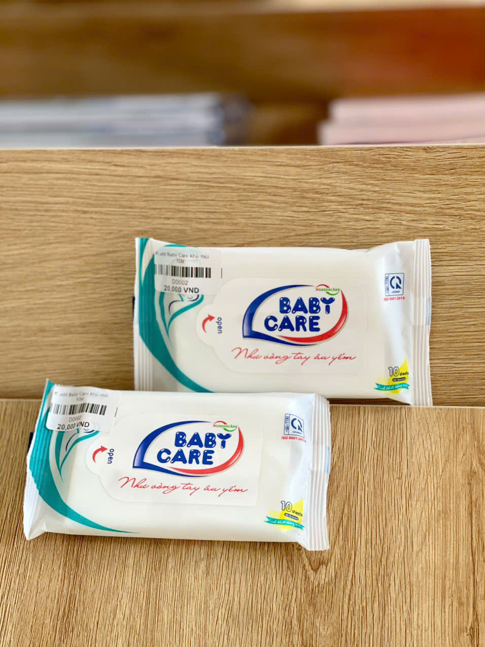 Khăn ướt Baby Care với chiết xuất dịu nhẹ, không chứa cồn, an toàn cho da nhạy cảm và làn da em bé.