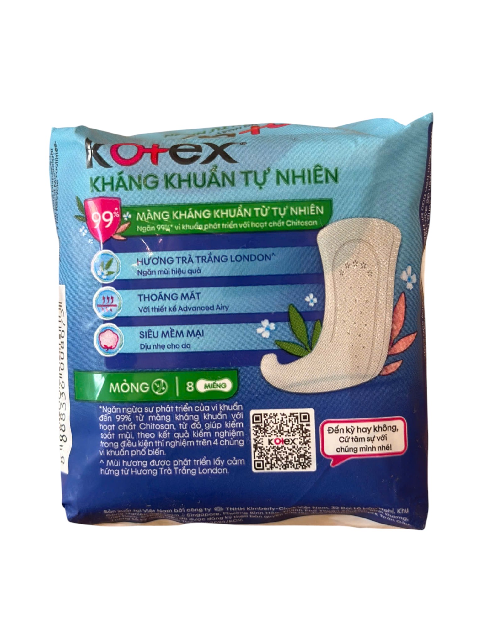Băng vệ sinh Kotex Hằng Ngày 8 Miếng mang đến khả năng kháng khuẩn tự nhiên, giúp ngăn ngừa vi khuẩn lên đến 99% và hạn chế m