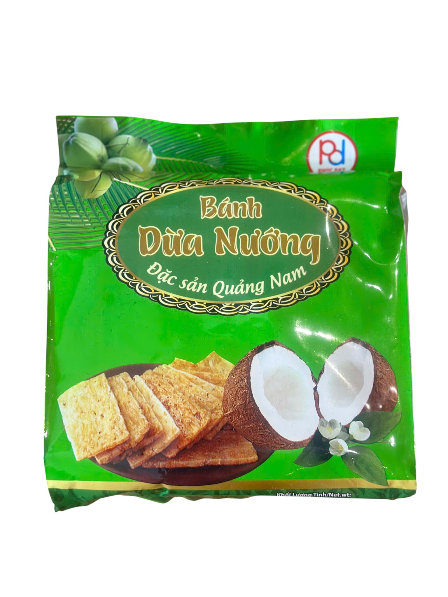 Bánh dừa nướng giòn rụm, thơm béo từ sợi dừa tươi nguyên chất. Hương vị truyền thống, không chất bảo quản, thích hợp dùng cùng trà hoặc cà phê. Gói nhỏ tiện lợi, dễ mang theo hoặc làm quà biếu.