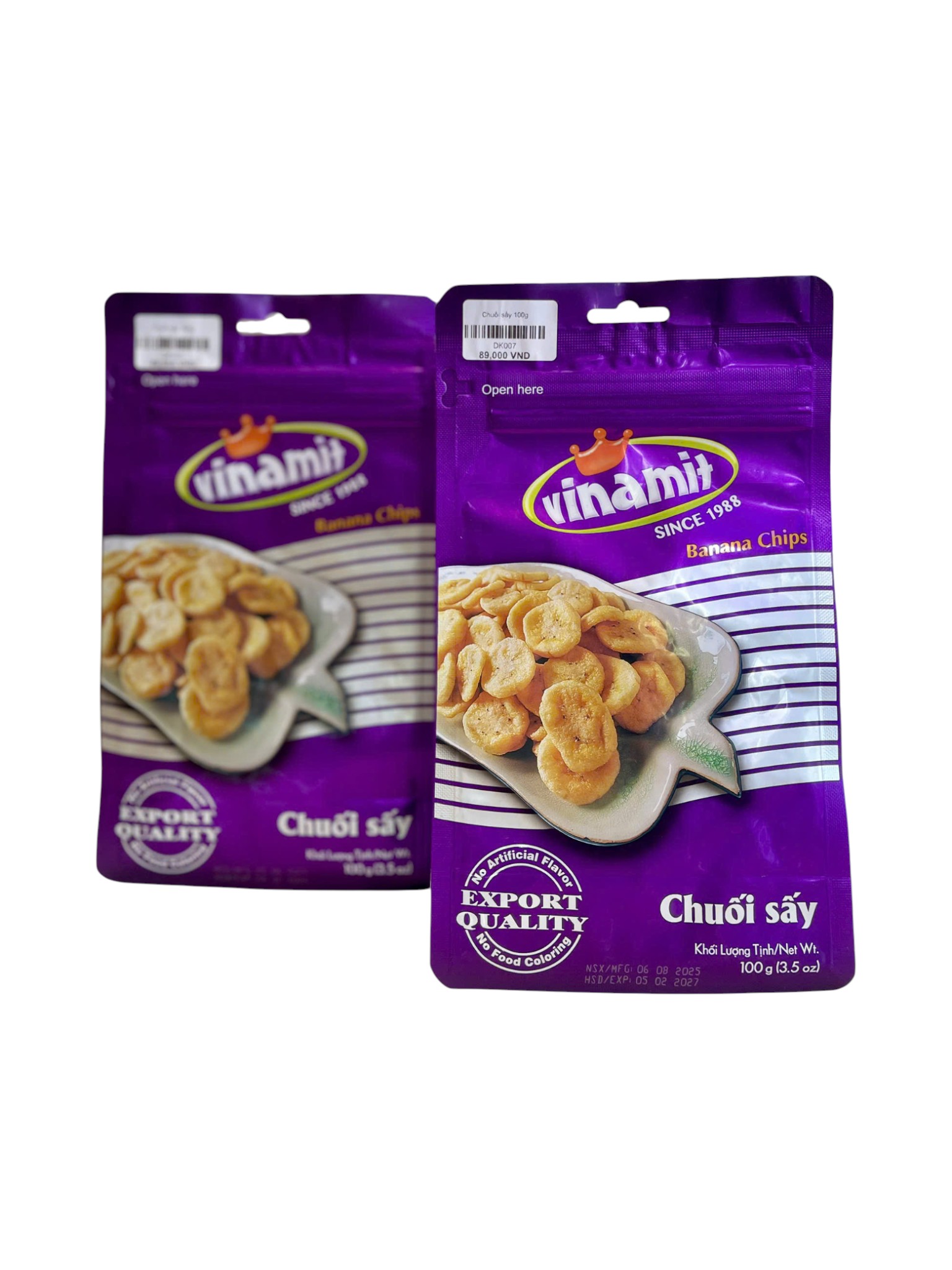 Chuối sấy Vinamit 100g giòn thơm, giữ trọn vị ngọt tự nhiên của chuối chín. Sản phẩm không dùng phẩm màu hay hương liệu nhân tạo, an toàn cho cả gia đình. Bao bì tiện lợi, dễ mang theo và dùng ngay. Thích hợp làm món ăn vặt hoặc bổ sung năng lượng nhanh.