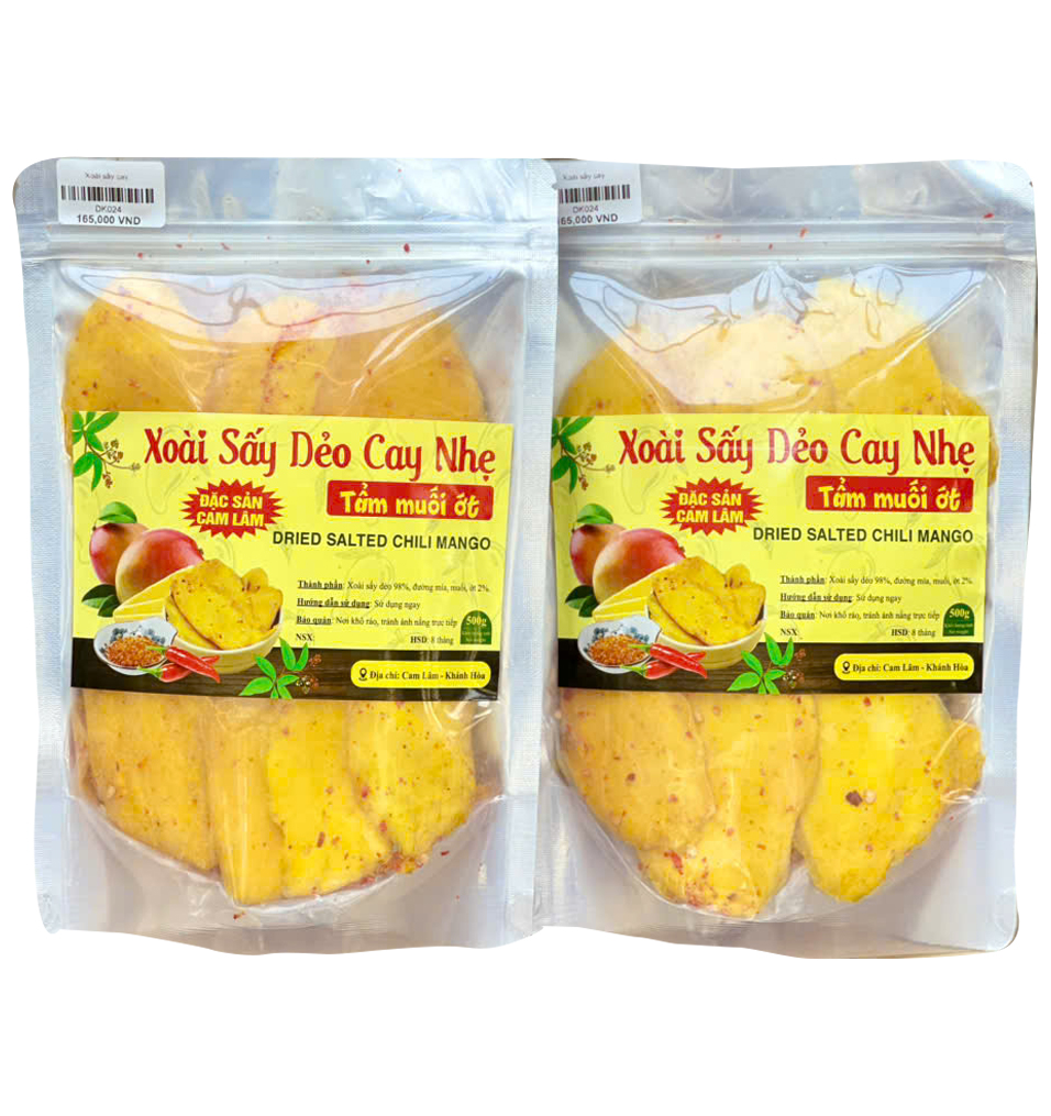 "Xoài Sấy Cay 500g Xoài tươi chọn lọc được sấy dẻo kết hợp cùng vị cay nhẹ đặc trưng, tạo nên hương vị chua ngọt hòa quyện cay nồng độc đáo. Sản phẩm thích hợp làm món ăn vặt lạ miệng, giàu vitamin, tiện lợi mang theo mọi lúc mọi nơi."