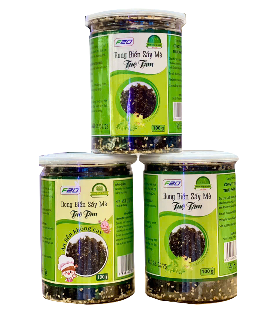 Rong biển sấy mè được chế biến từ rong biển tự nhiên kết hợp cùng mè rang thơm bùi, tạo nên hương vị giòn ngon, dễ ăn, thích hợp cho cả trẻ em và người lớn. Sản phẩm được đóng hộp 100g nhỏ gọn, tiện lợi mang theo mọi nơi.