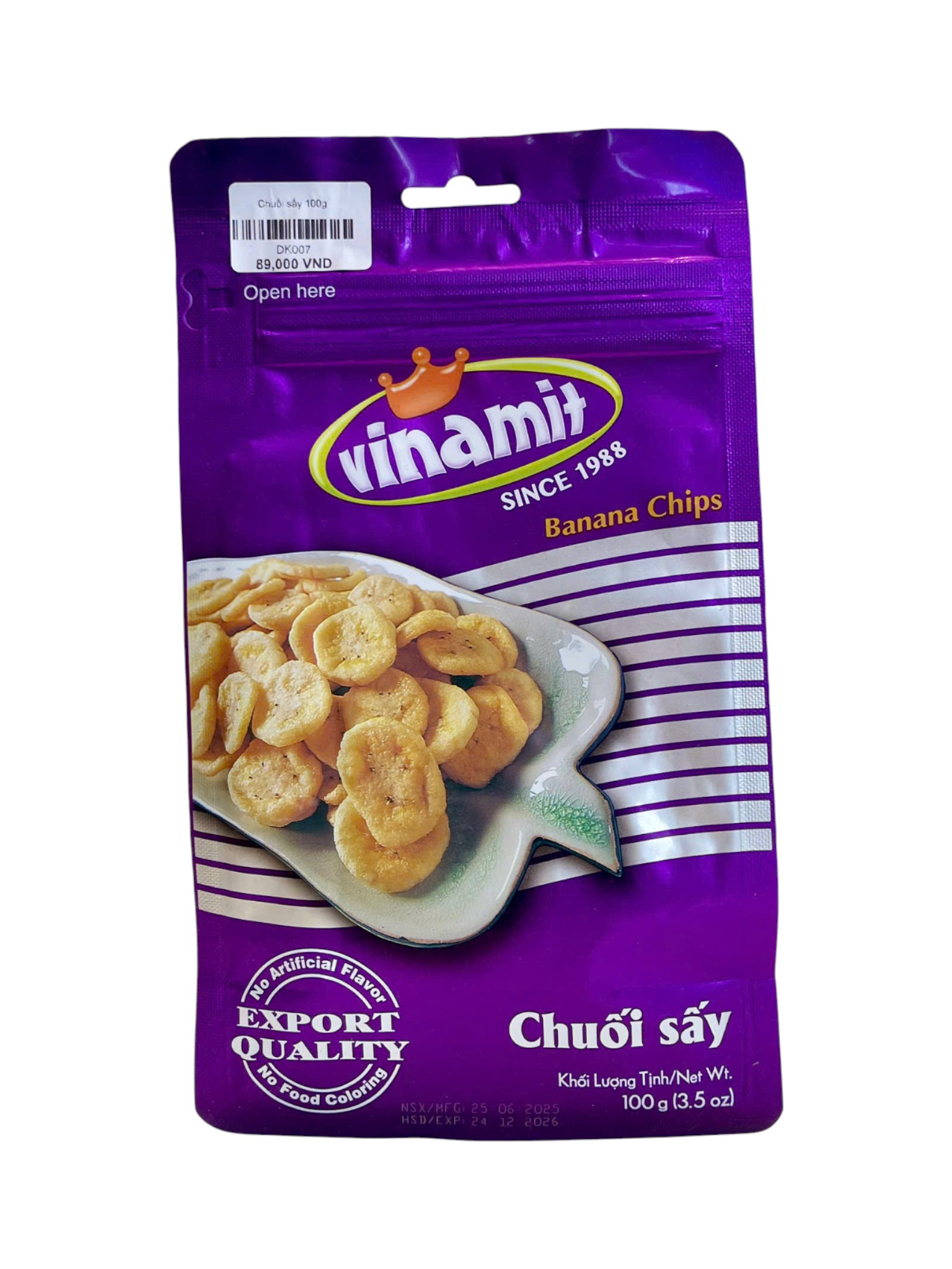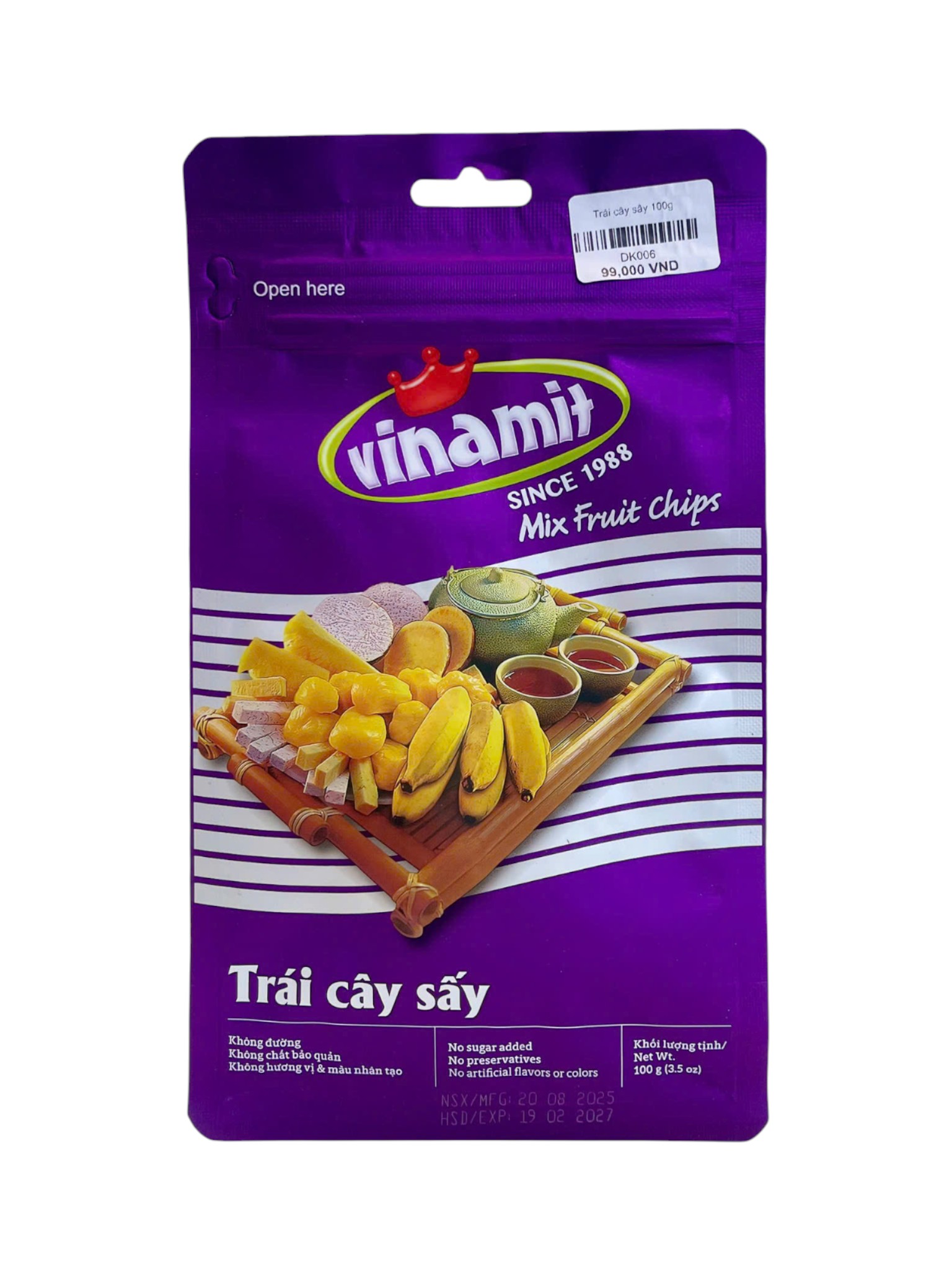 Chuối sấy Vinamit 100g giòn thơm, giữ trọn vị ngọt tự nhiên của chuối chín. Sản phẩm không dùng phẩm màu hay hương liệu nhân tạo, an toàn cho cả gia đình. Bao bì tiện lợi, dễ mang theo và dùng ngay. Thích hợp làm món ăn vặt hoặc bổ sung năng lượng nhanh.