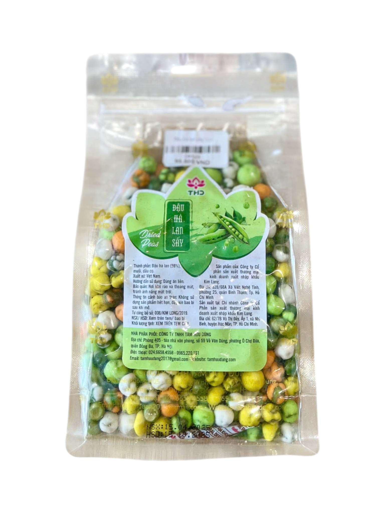 Đậu Hà Lan sấy giòn thơm, kết hợp nhiều màu sắc hấp dẫn và hương vị đậm đà. Sản phẩm được chế biến từ những hạt đậu tuyển chọn, mang lại món ăn vặt tiện lợi và giàu dinh dưỡng. Túi đóng gói kín giúp giữ trọn độ giòn và dễ dàng mang theo. Thích hợp dùng khi làm việc, xem phim hoặc đãi khách.
