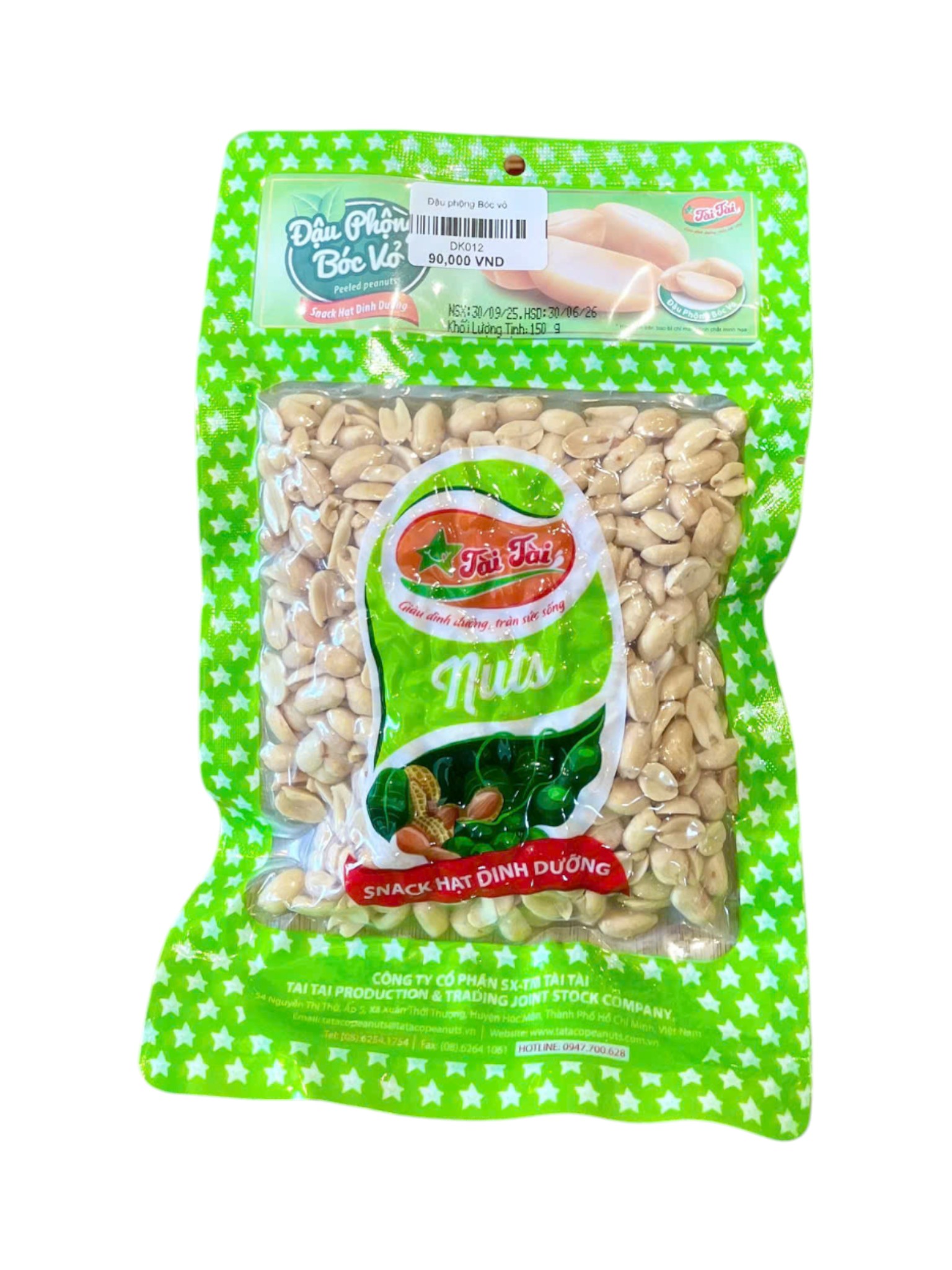 Đậu phộng bóc vỏ Tài Tài 500g là món ăn vặt bổ dưỡng, thơm ngon và giàu năng lượng. Được làm từ những hạt đậu phộng chất lượng, tươi ngon, sản phẩm cung cấp nhiều protein và vitamin, thích hợp cho mọi lứa tuổi. Đóng gói tiện lợi, dễ sử dụng cho gia đình.