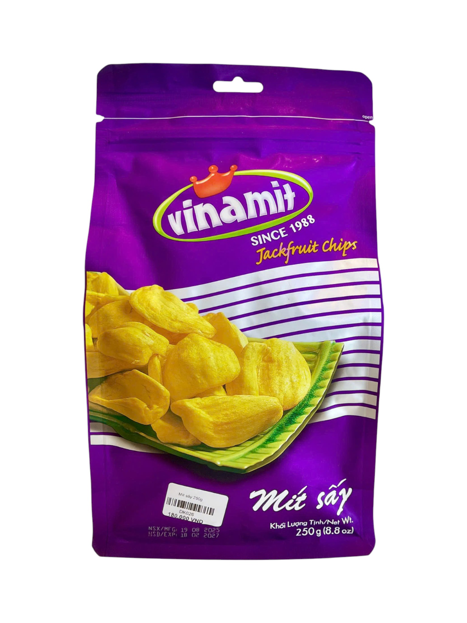 Mít sấy Vinamit 150g là món ăn vặt hấp dẫn, thơm ngon với vị ngọt tự nhiên của mít. Sản phẩm được chế biến từ những múi mít tươi ngon, sấy khô giữ nguyên hương vị, giúp bạn tận hưởng món trái cây nhiệt đới mọi lúc, mọi nơi. Bao bì tiện dụng, dễ dàng mang theo.
