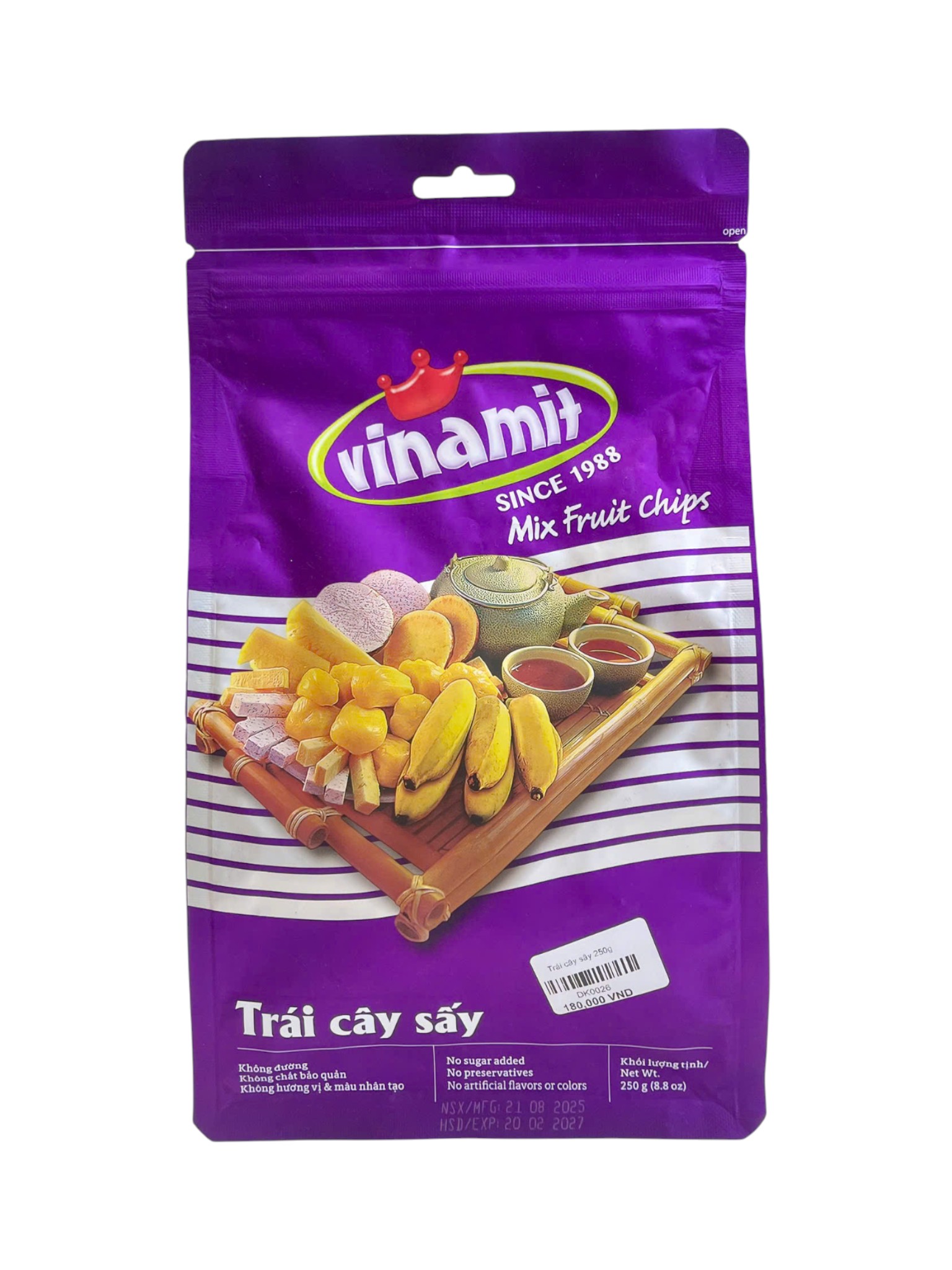 Trái cây sấy Vinamit 250g là sự lựa chọn tuyệt vời cho những ai yêu thích các món ăn vặt lành mạnh. Sản phẩm bao gồm nhiều loại trái cây tươi ngon, được sấy khô giữ trọn hương vị tự nhiên và dưỡng chất. Không chứa chất tạo màu, hương liệu nhân tạo, và bảo quản, đảm bảo an toàn cho sức khỏe.