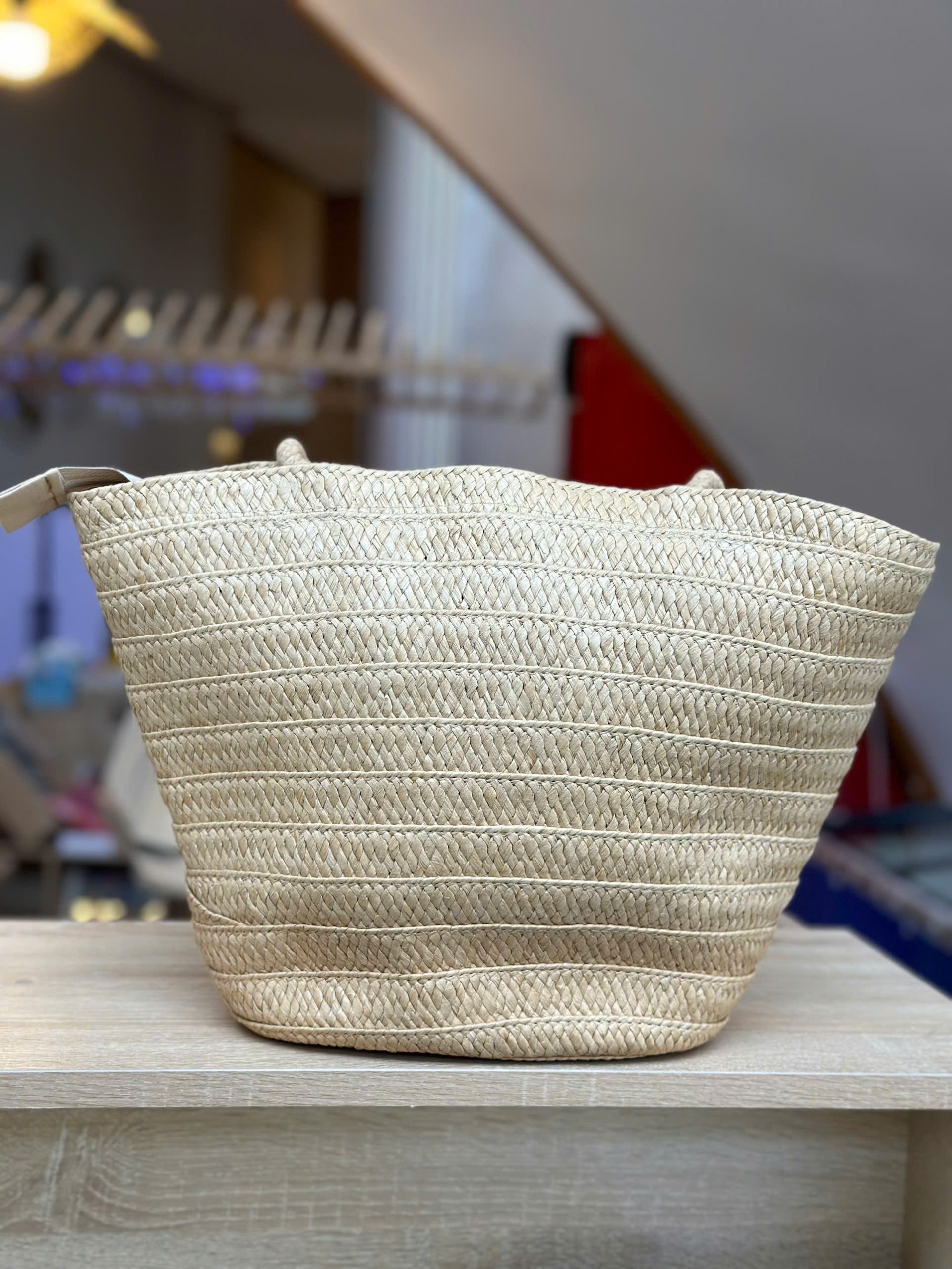 Chất liệu cói tự nhiên, form giỏ trung tiện lợi.