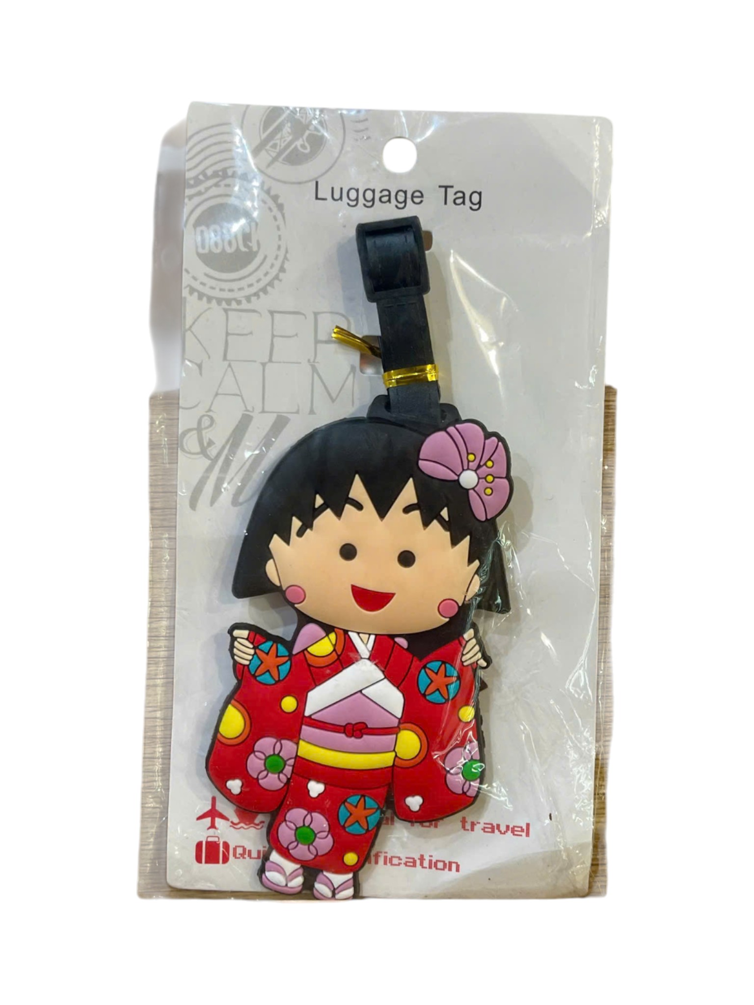 Thẻ có hình dáng một cô gái hoạt hình dễ thương, mặc chiếc Kimono màu đỏ với họa tiết hoa văn sinh động . Cô gái có mái tóc đen ngắn, cài một bông hoa anh đào màu hồng trên đầu . Thiết kế này mang đậm nét văn hóa và nghệ thuật truyền thống Nhật Bản . Thẻ đi kèm với một dây đeo màu đen để gắn vào hành lý.