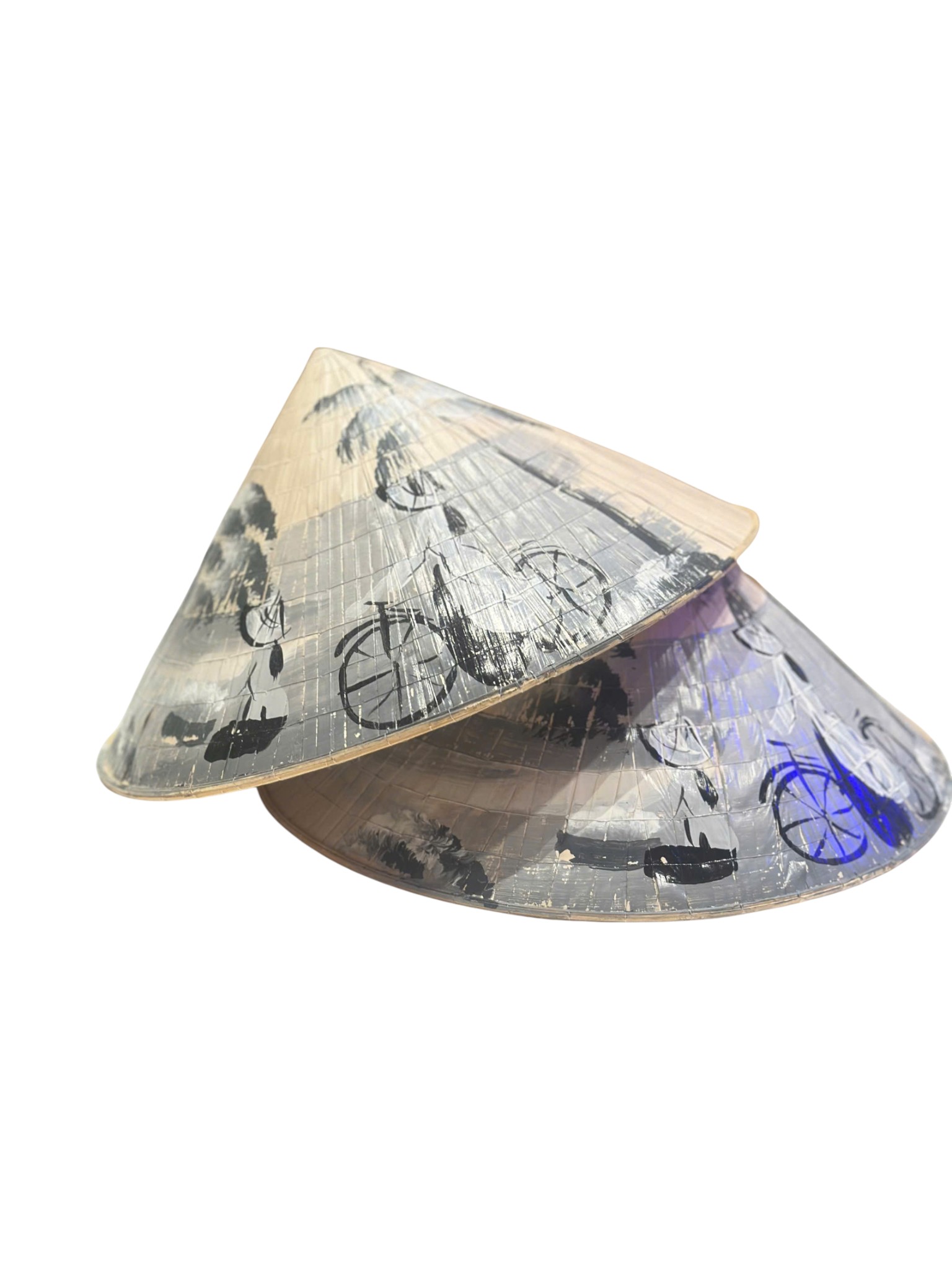 Nón nghệ thuật nhỏ màu đen trắng với họa tiết xe đạp mang đến vẻ đẹp độc đáo và sáng tạo. Sản phẩm phù hợp để trưng bày hoặc làm phụ kiện thời trang, kết hợp giữa nét văn hóa truyền thống và phong cách hiện đại.