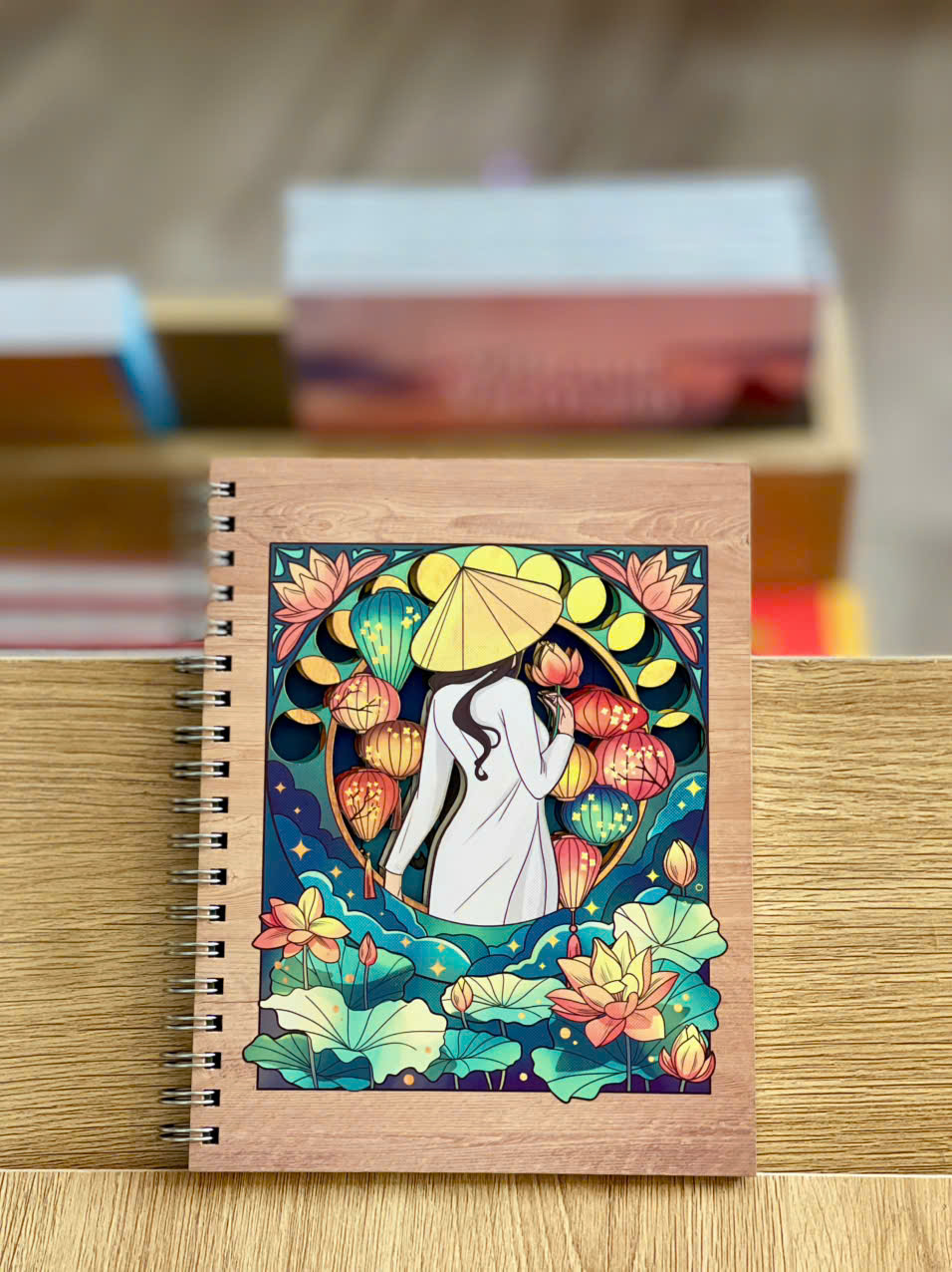 Cuốn sổ tay mang đậm hơi thở Art Nouveau kết hợp hình ảnh Áo Dài Việt Nam duyên dáng. Thiết kế bìa in nổi tinh tế, vừa cổ điển vừa hiện đại, gợi cảm hứng nghệ thuật trong từng trang viết.