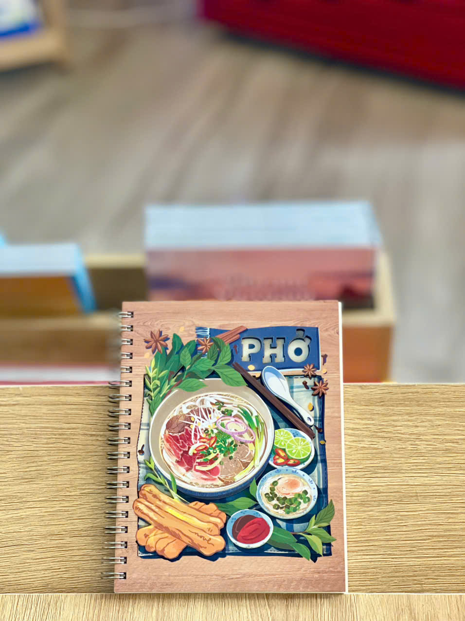 Notebook – Vietnamese Cuisine: Phở là sổ tay bìa cứng in họa tiết tô phở Việt Nam, vừa đáng yêu vừa mang đậm dấu ấn văn hóa ẩm thực. Với thiết kế nhỏ gọn, tiện dụng, đây là người bạn đồng hành lý tưởng cho học tập, làm việc hoặc làm quà lưu niệm.