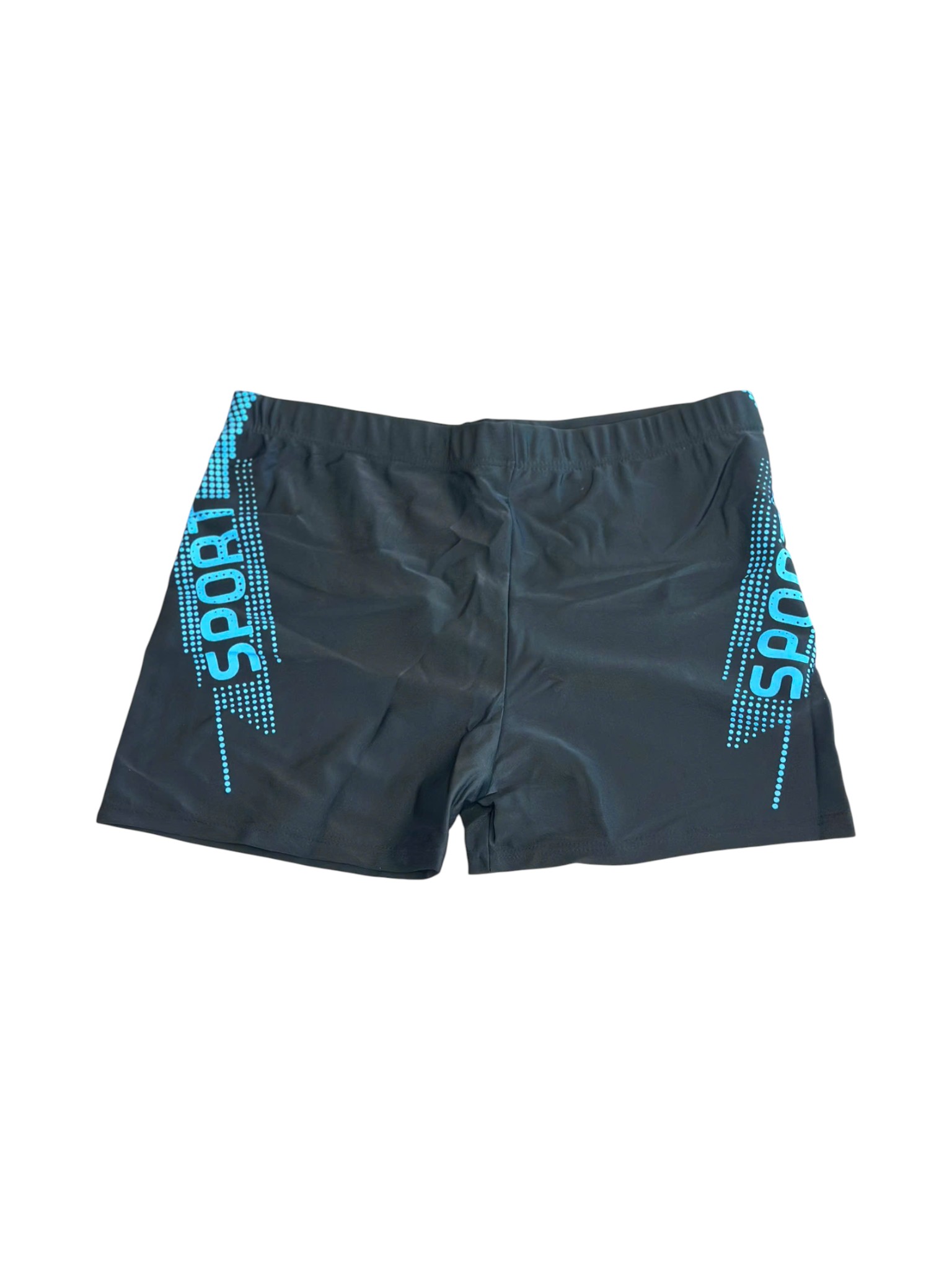 Dáng quần Boxer/Shorts ôm sát hiện đại, cạp chun co giãn, tạo sự thoải mái và linh hoạt tối đa khi bơi. Vải bơi cao cấp nhanh khô và co giãn 4 chiều, giúp giảm ma sát nước và tăng tốc độ.. Màu đen nam tính kết hợp cùng chữ "SPORT" in decal màu Xanh/Đỏ/Trắng (Blue/Red/White) cá tính ở hai bên.