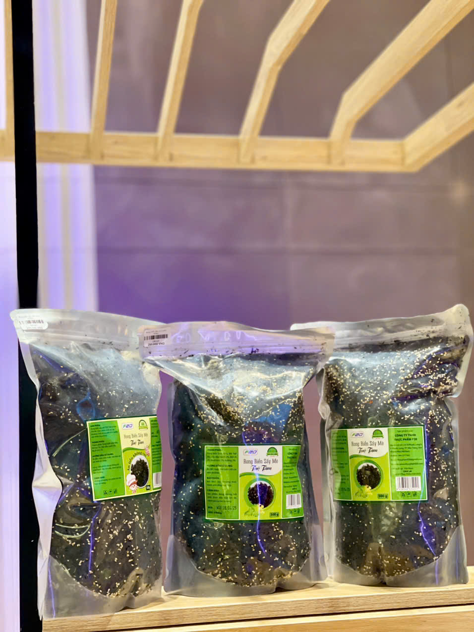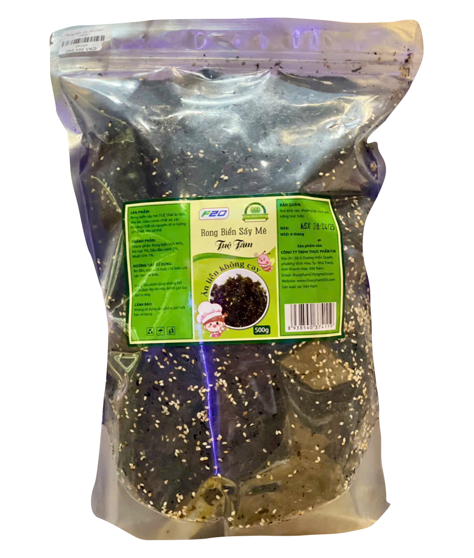 Rong biển sấy mè được làm từ rong biển tươi chọn lọc, kết hợp với mè rang vàng thơm, tạo nên hương vị đặc trưng hấp dẫn. Sản phẩm được đóng gói túi zip 500gr tiện lợi, giúp giữ trọn vị ngon và dinh dưỡng.