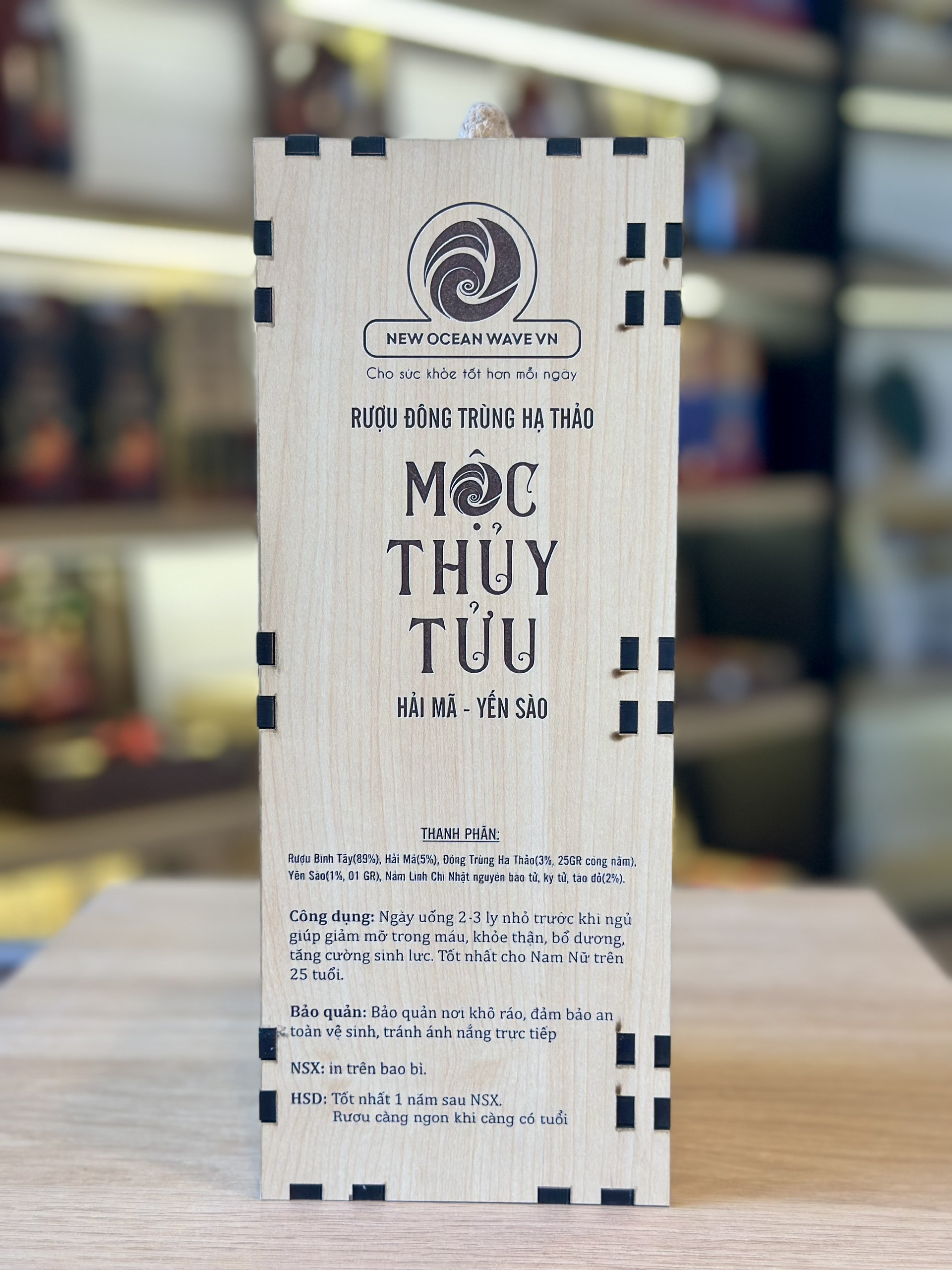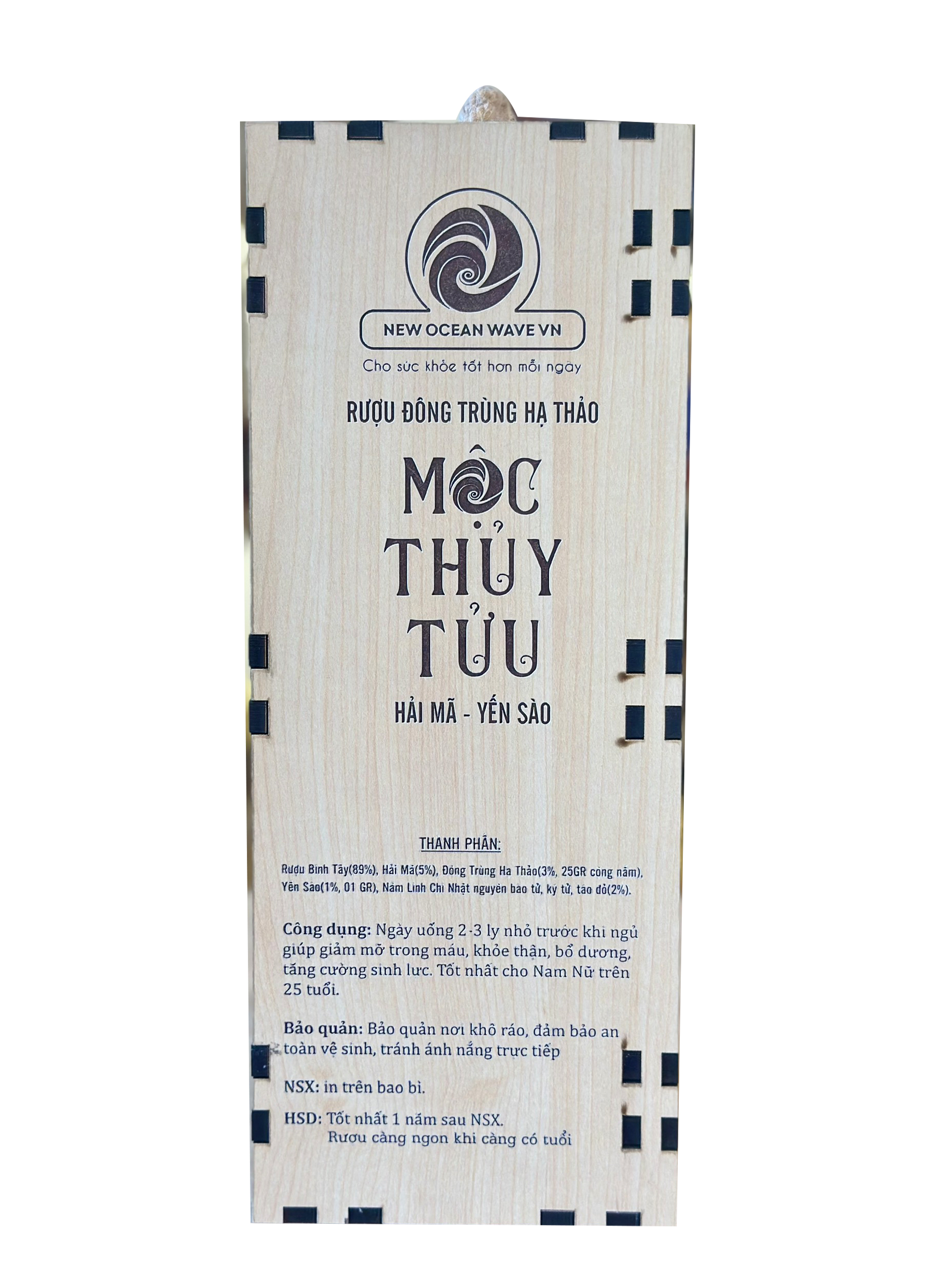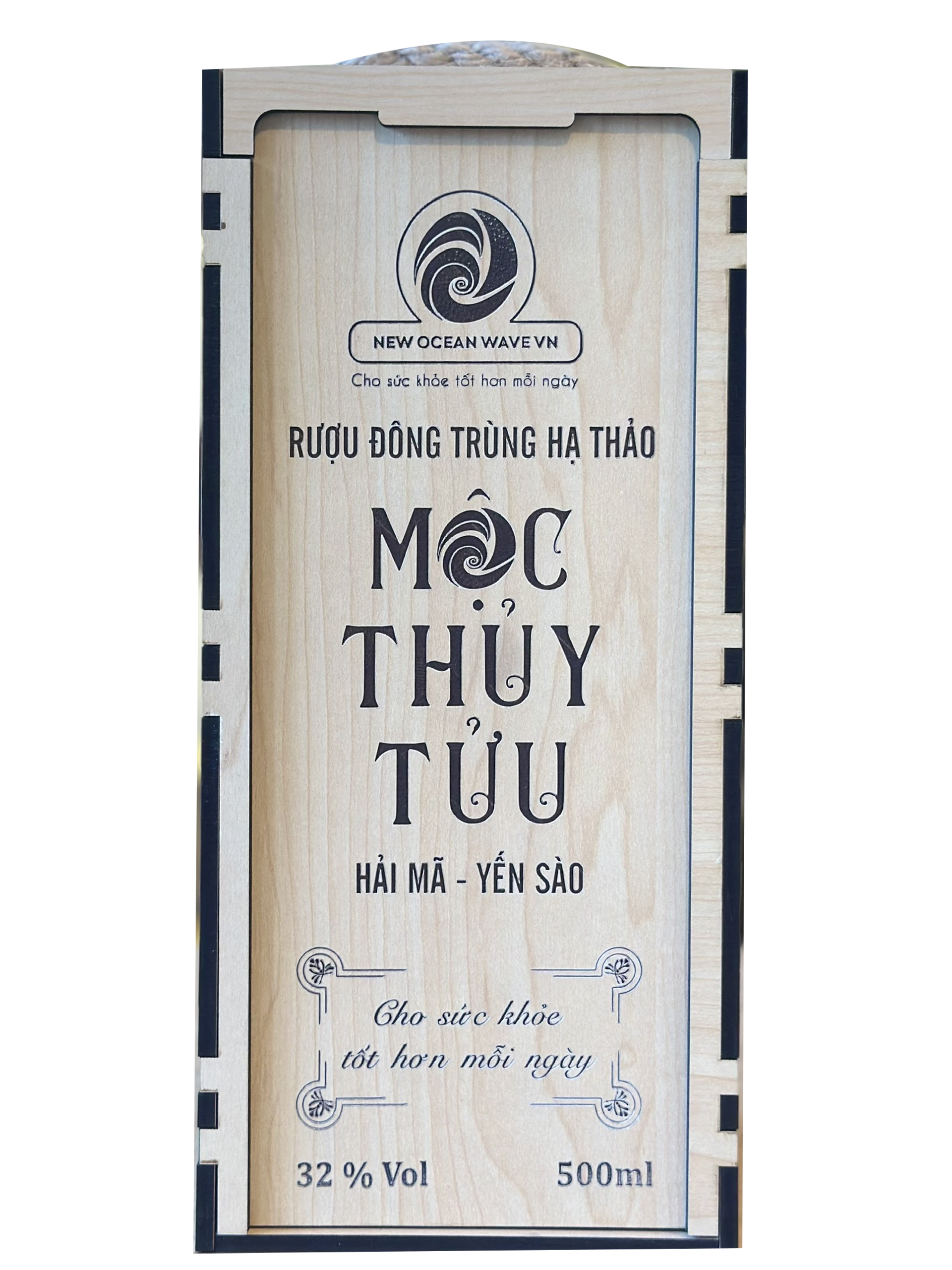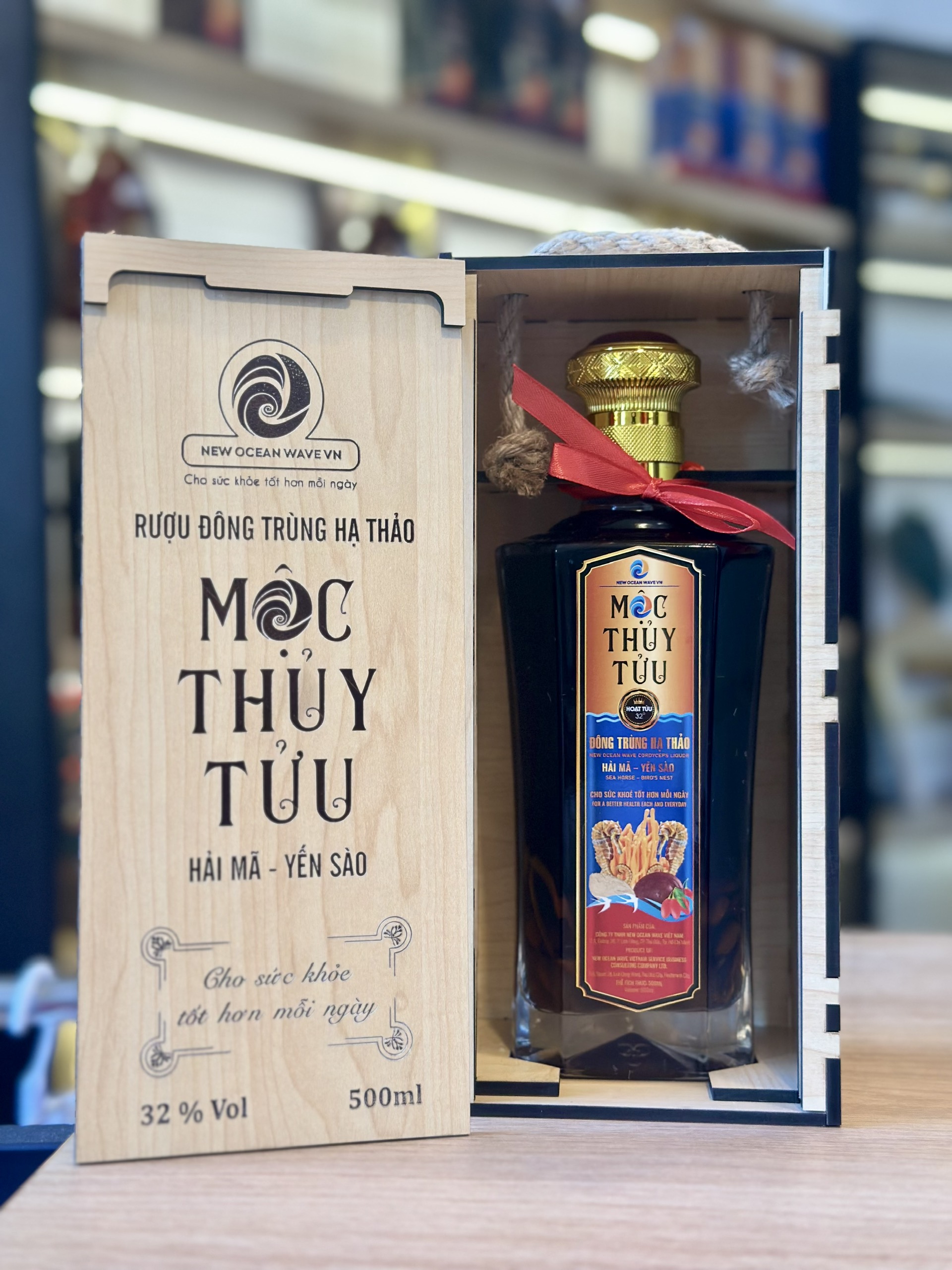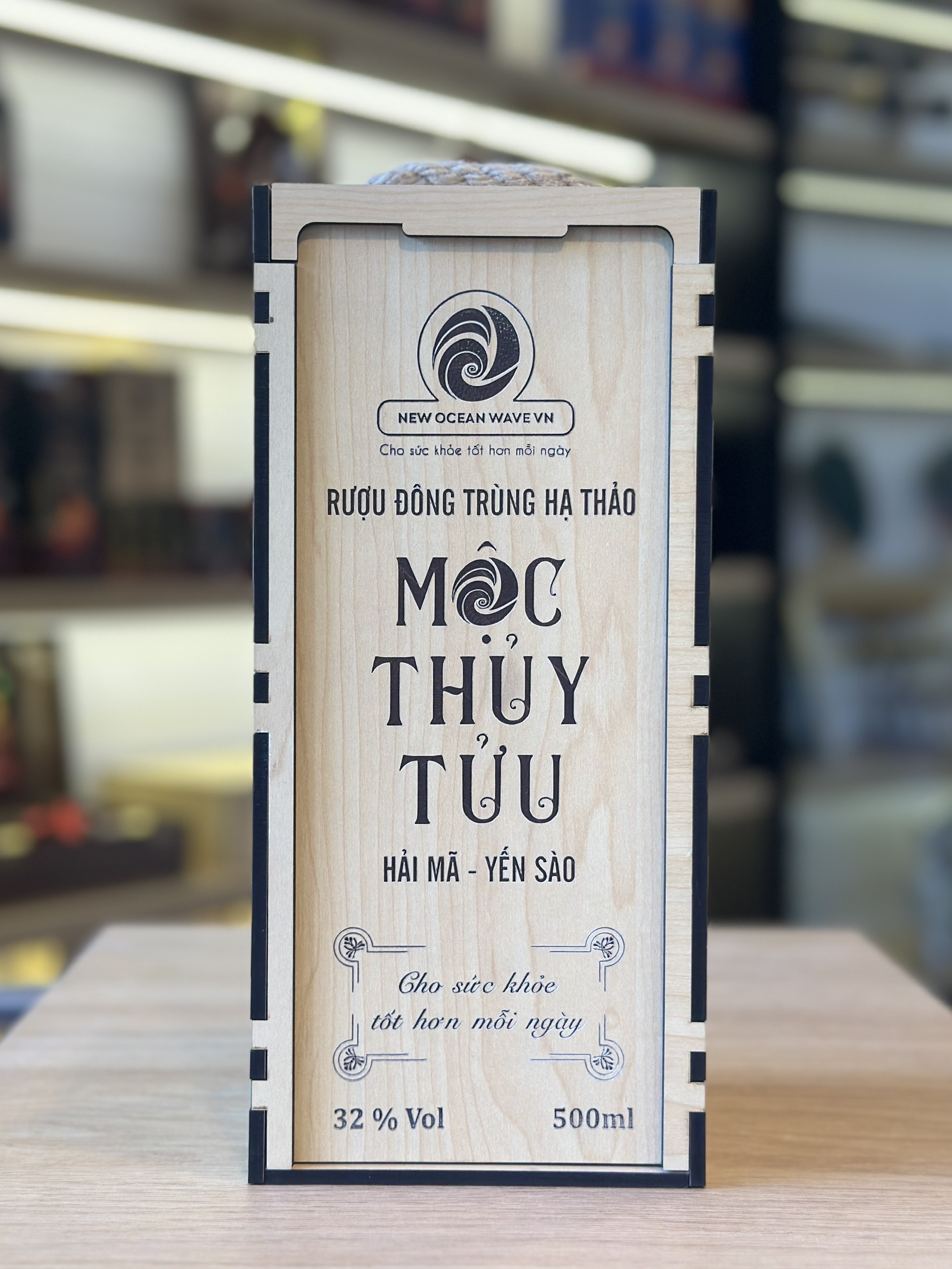 RƯỢU ĐÔNG TRÙNG HẠ THẢO MỘC THỦY TỬU HẢI MÃ/ YẾN SÀO 500ML HỘP GỖ