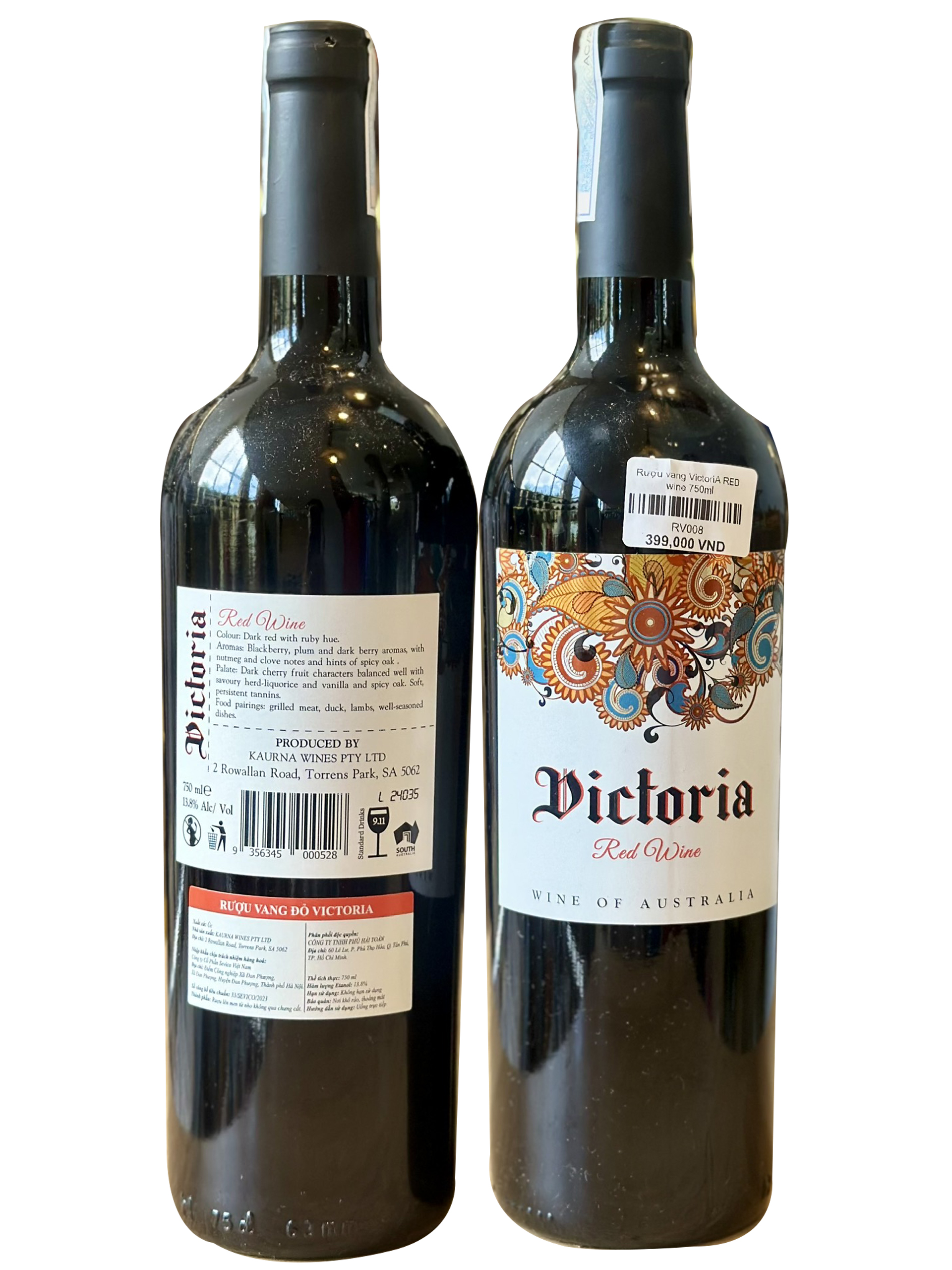 Rượu vang Victoria Red Wine 750ml là dòng vang đỏ dễ thưởng thức, phù hợp với nhiều dịp