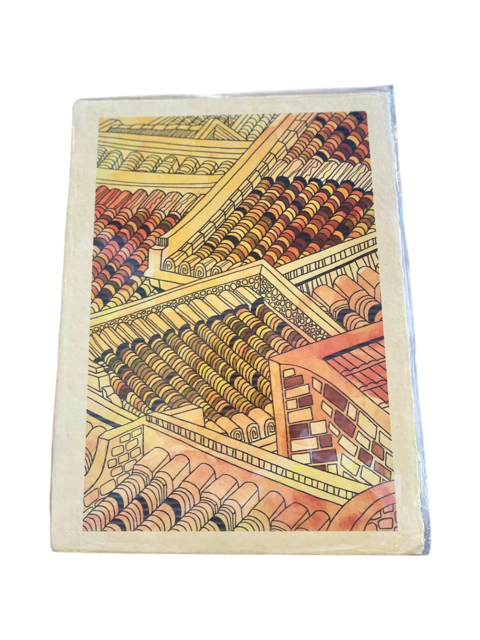 Poster nghệ thuật Mái Ngói Việt Nam (Life in Vietnam_11), thuộc bộ sưu tập Life in Vietnam. Tác phẩm khai thác vẻ đẹp độc đáo của kiến trúc mái ngói truyền thống (có thể là ngói âm dương) qua ngôn ngữ trừu tượng và hình học. Bức tranh nổi bật với các mảng màu nâu đỏ và vàng cam ấm áp, tái hiện sự cổ kính, hài hòa của những ngôi nhà phố cổ. Poster được in trên Giấy Dó truyền thống của Việt Nam, đảm bảo chất lượng và tính thẩm mỹ cao.