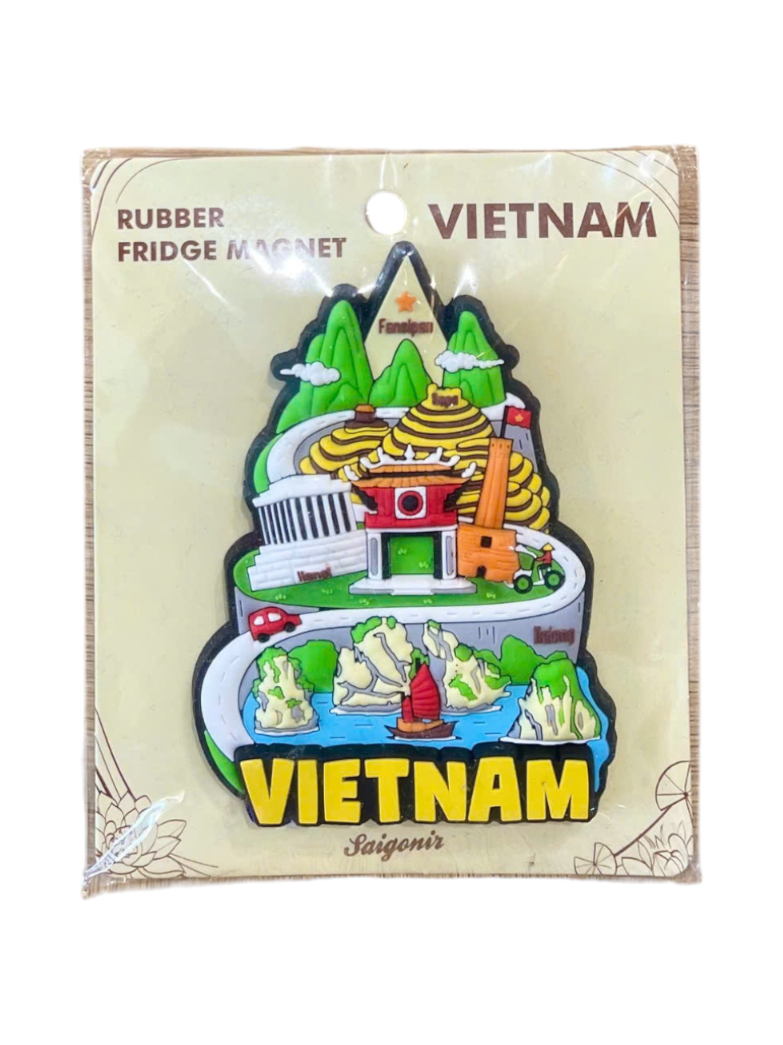 Tuyển tập các loại nam châm tủ lạnh bằng cao su có kích thước lớn, chi tiết cao với thiết kế ba chiều. Những chiếc nam châm này lý tưởng để trang trí tủ lạnh hoặc bất kỳ bề mặt từ tính nào, là món quà lưu niệm bền bỉ và rực rỡ từ Việt Nam.