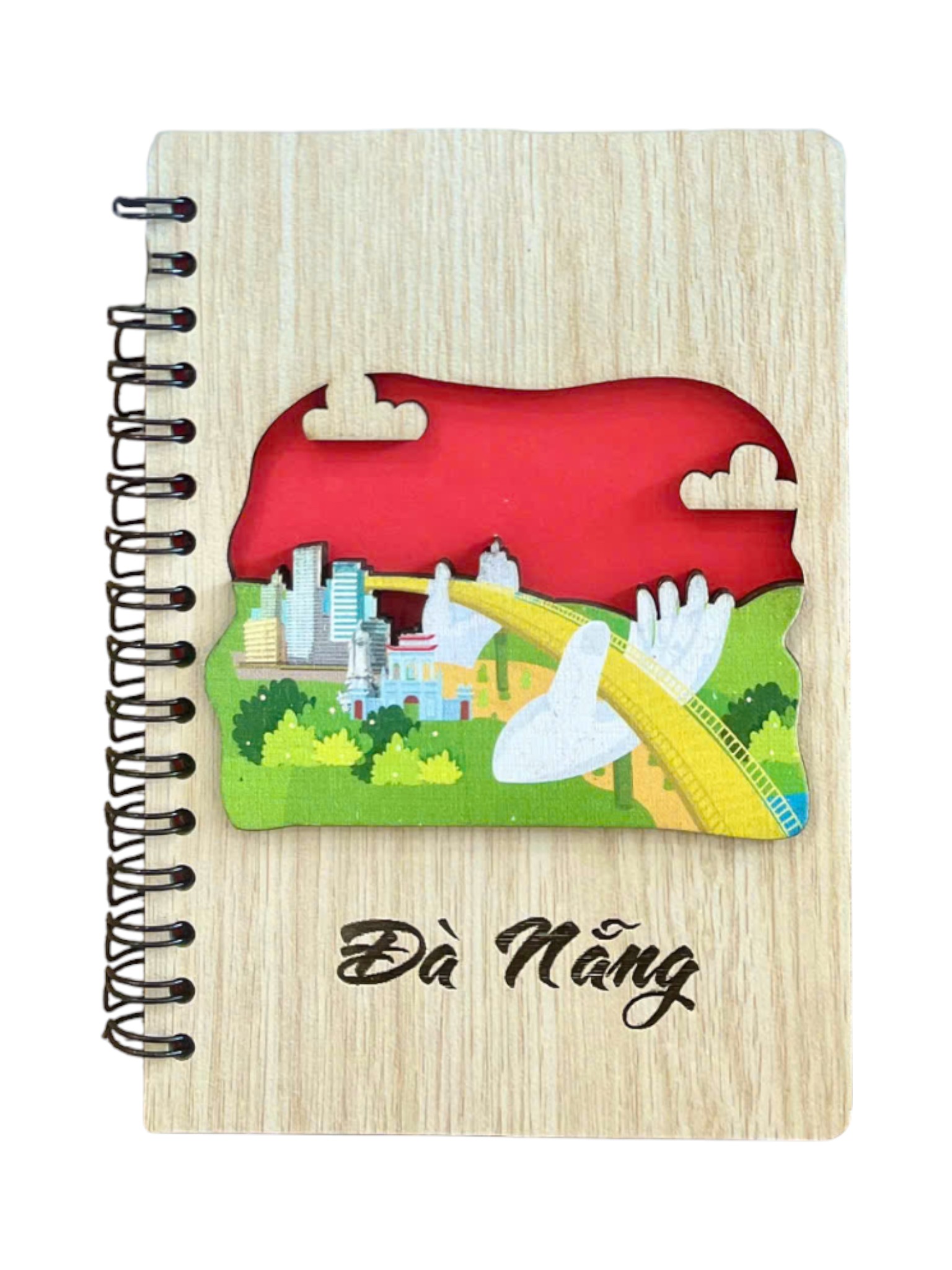 Đây là bộ sưu tập sổ tay được thiết kế độc đáo, dùng làm quà lưu niệm đặc trưng của thành phố Đà Nẵng, Việt Nam. Chất liệu: Bìa sổ được làm từ gỗ cao cấp hoặc tre/nứa, mang lại vẻ ngoài mộc mạc, vintage và thân thiện với môi trường. Bìa gỗ thường có khả năng chống mối mọt và dính nước không bị hư nát.
