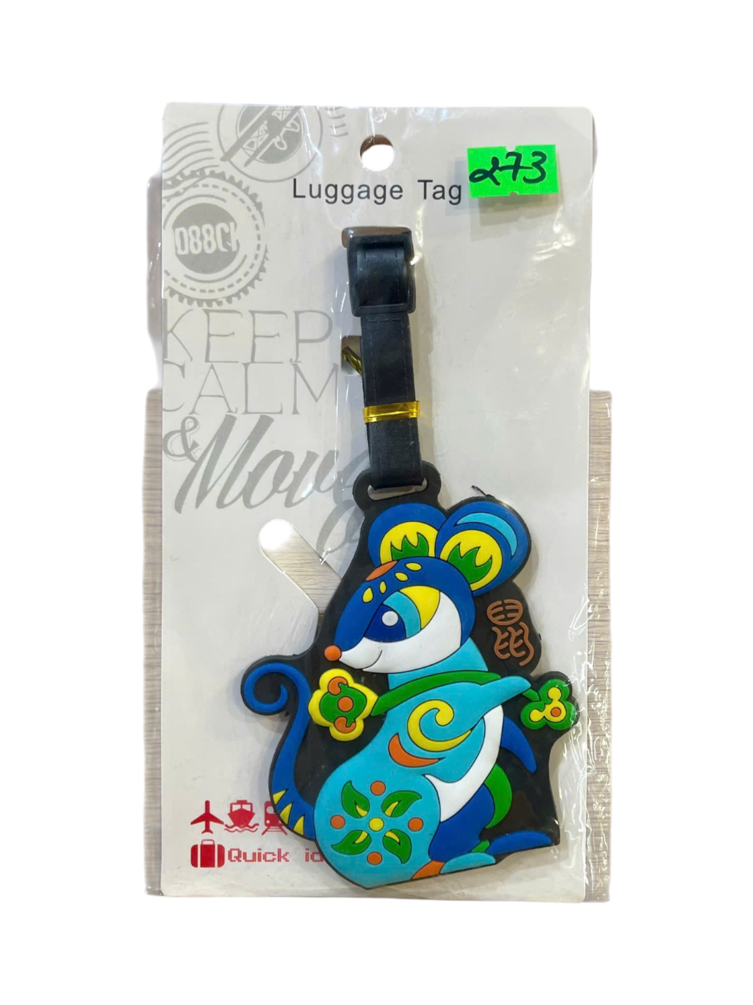 Thẻ có hình dáng một chú Chuột được cách điệu hóa, với màu sắc sặc sỡ chủ đạo là xanh dương, xanh ngọc, vàng và đỏ. Chú chuột được trang trí bằng các họa tiết hoa văn truyền thống hoặc dân gian. Thẻ có chữ "Phúc" (福) được viết bằng thư pháp hoặc kiểu chữ Hán được cách điệu ở bên phải, mang ý nghĩa may mắn, tốt lành. Thẻ đi kèm với một dây đeo màu đen để gắn vào hành lý.