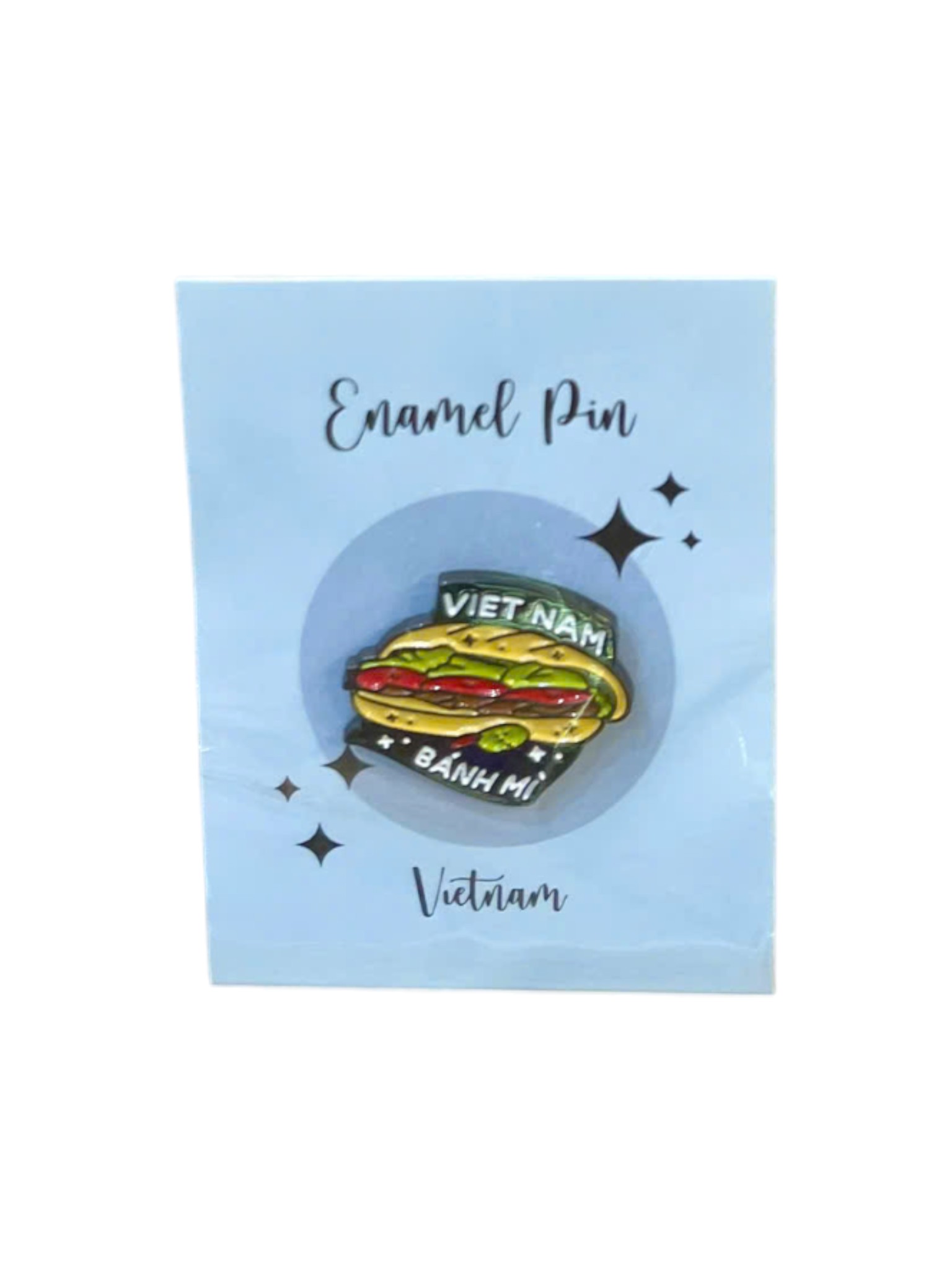 Ghim cài áo (Enamel Pin) vui nhộn và rực rỡ, được thiết kế theo hình ảnh chiếc bánh mì Việt Nam trứ danh. Chiếc ghim màu sắc này là phụ kiện hoàn hảo cho những người yêu ẩm thực, du khách hoặc bất kỳ ai muốn thể hiện sự yêu thích đối với nền ẩm thực Việt Nam. Thiết kế có in chữ "BÁNH MÌ" và "VIET NAM".