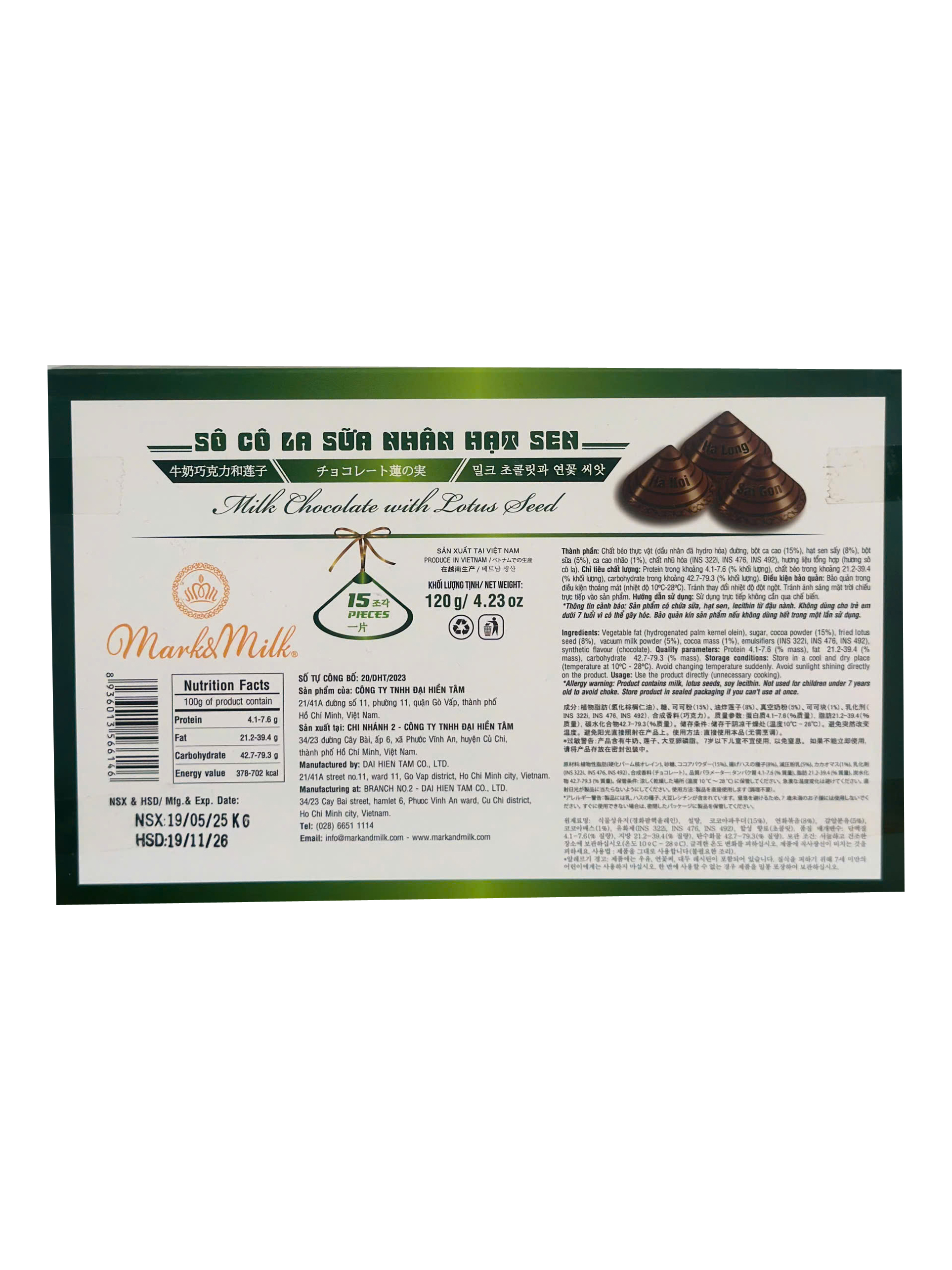 Socola hạt sen có vị đắng dịu cùng sữa thơm ngọt, bên trong hạt sen bổ dưỡng