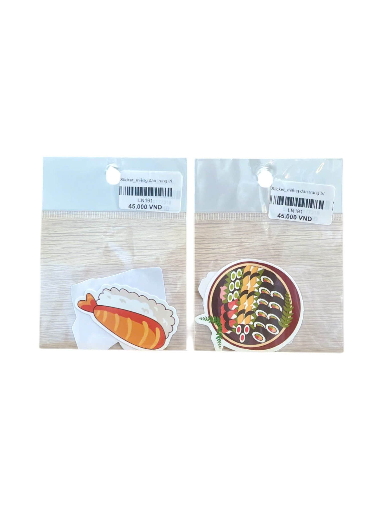 Bộ sản phẩm là các miếng dán trang trí chủ đề Ẩm thực Nhật Bản với phong cách thiết kế ngộ nghĩnh, đáng yêu.