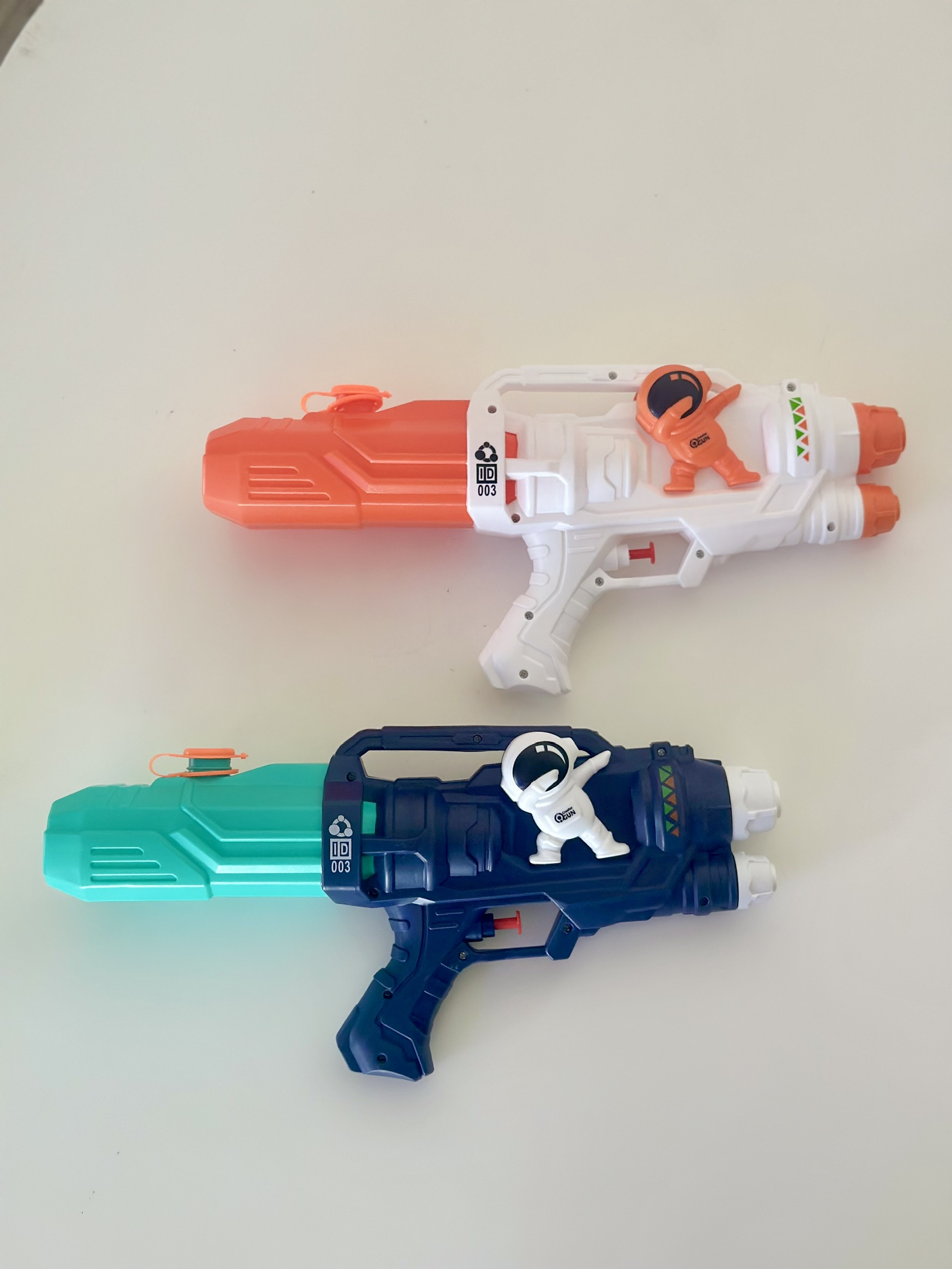 Súng nước 2 nòng ngắn với thiết kế mạnh mẽ, màu sắc nổi bật.