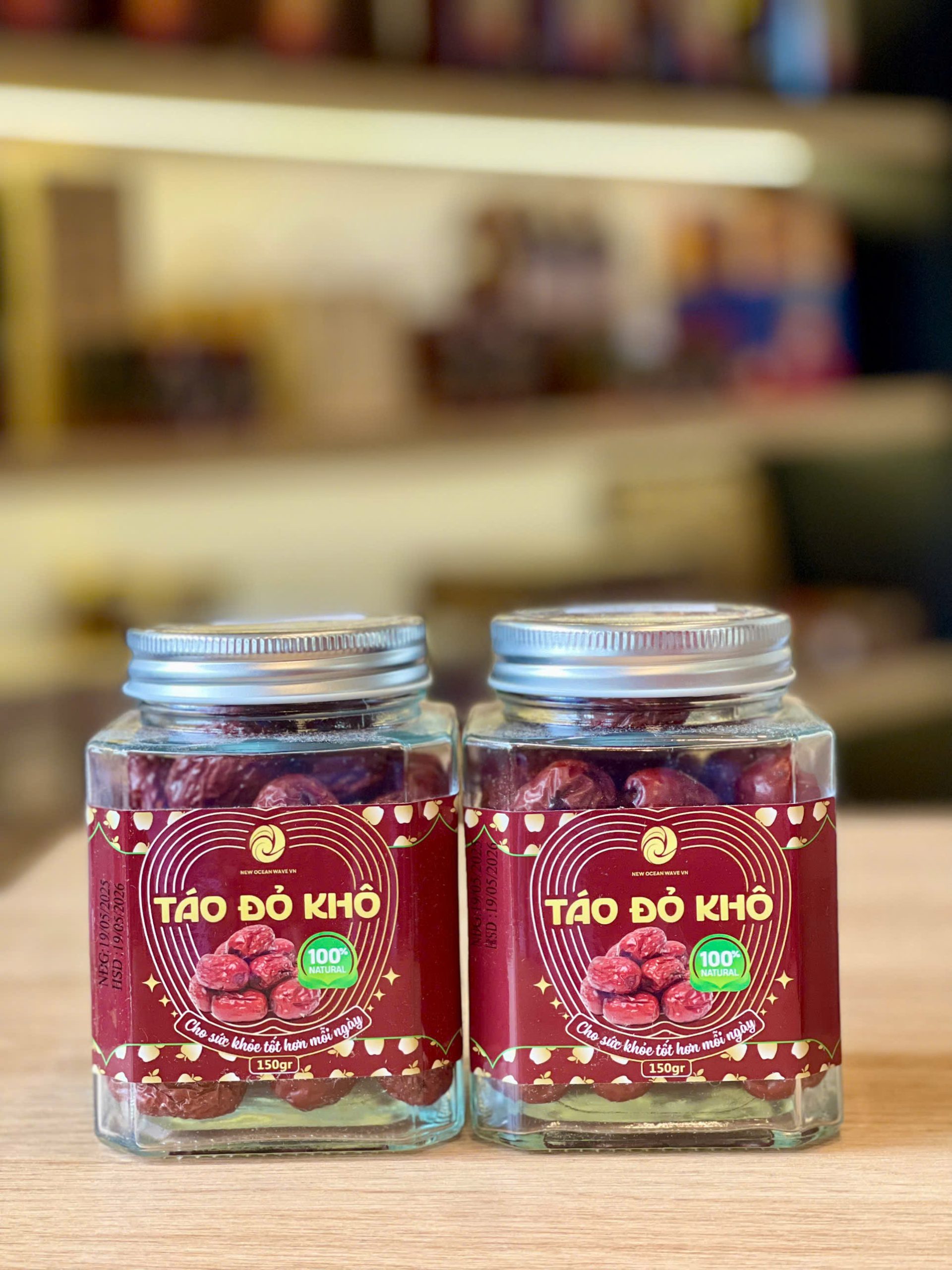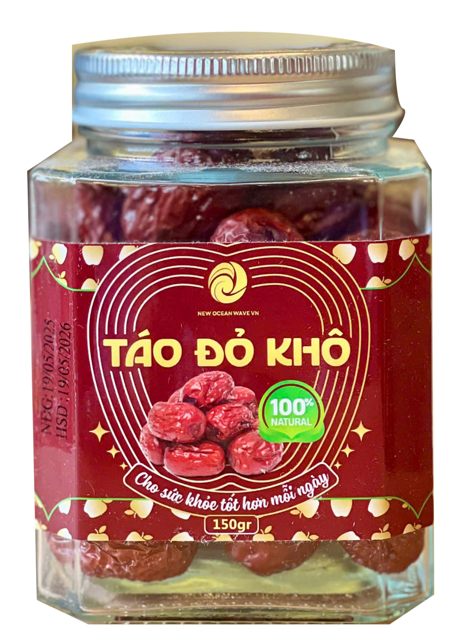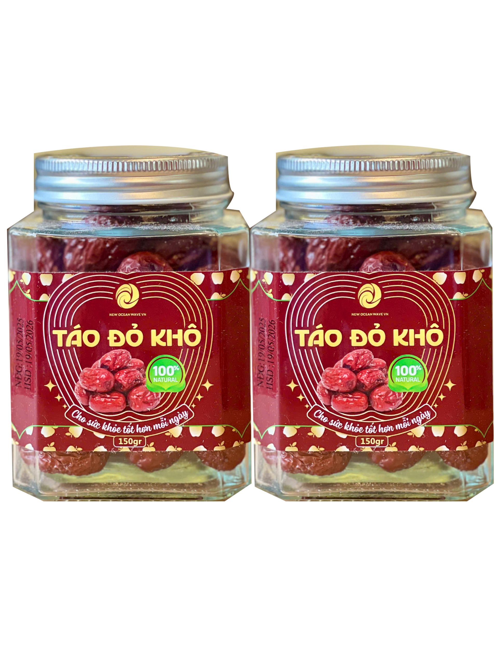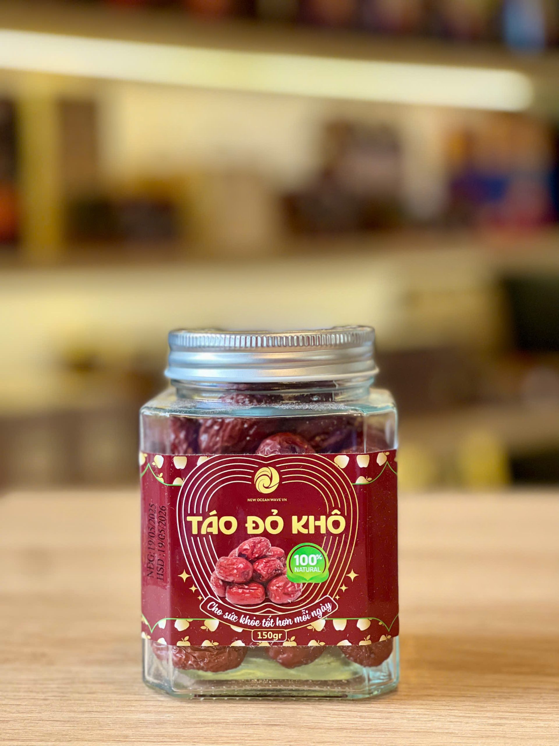 "Táo Đỏ Khô 150gr (nguyên trái) được tuyển chọn từ những quả táo đỏ chất lượng, sấy khô tự nhiên giữ trọn hương vị và dưỡng chất. Sản phẩm giàu vitamin và khoáng chất, giúp bồi bổ cơ thể, hỗ trợ an thần và tăng cường sức khỏe. Hương vị ngọt dịu, dễ dùng, phù hợp kết hợp trong các món chè, hầm canh hoặc hãm trà."