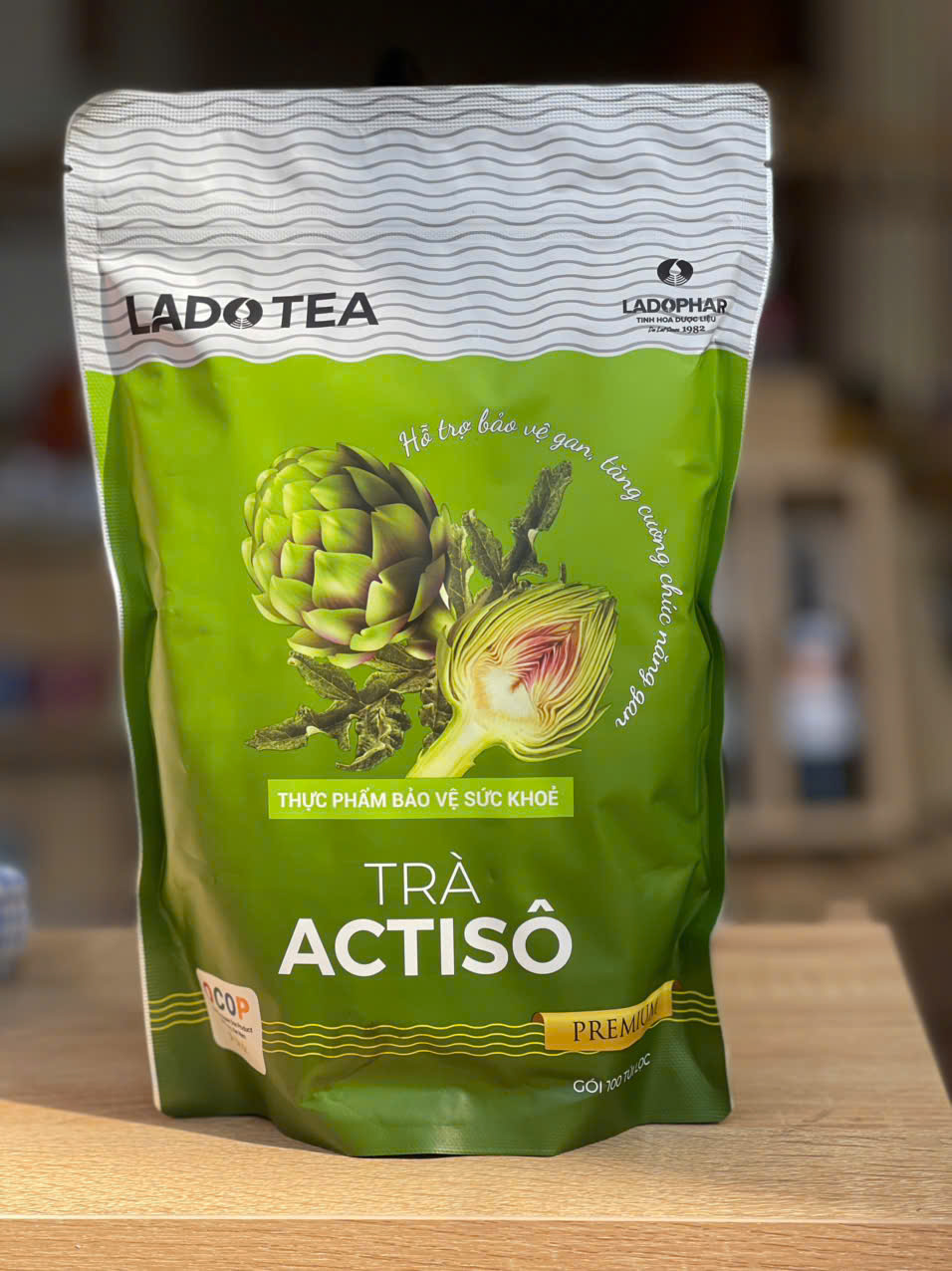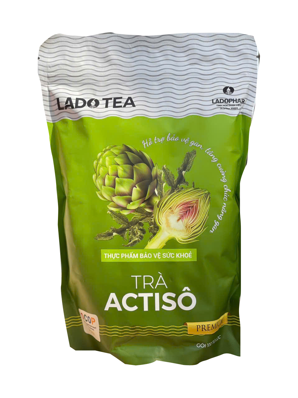 Là sản phẩm trà túi lọc có công dụng thanh nhiệt, mát gan, lợi tiểu và hỗ trợ tiêu hóa. Sản phẩm chứa bột actiso, cao đặc actiso, bột cỏ ngọt và đôi khi có thêm các thảo dược khác tùy loại. Trà này có hương vị ngọt thanh, thơm mùi actiso đặc trưng, giúp thư giãn tinh thần và cải thiện sức khỏe gan.
