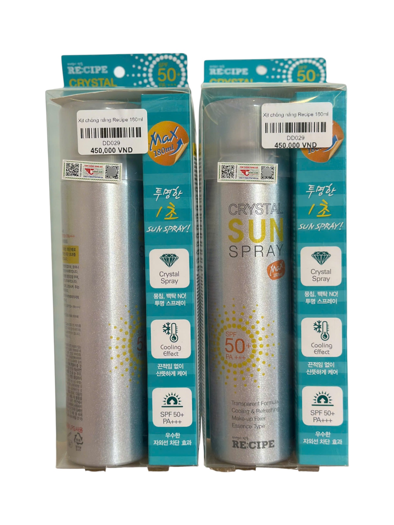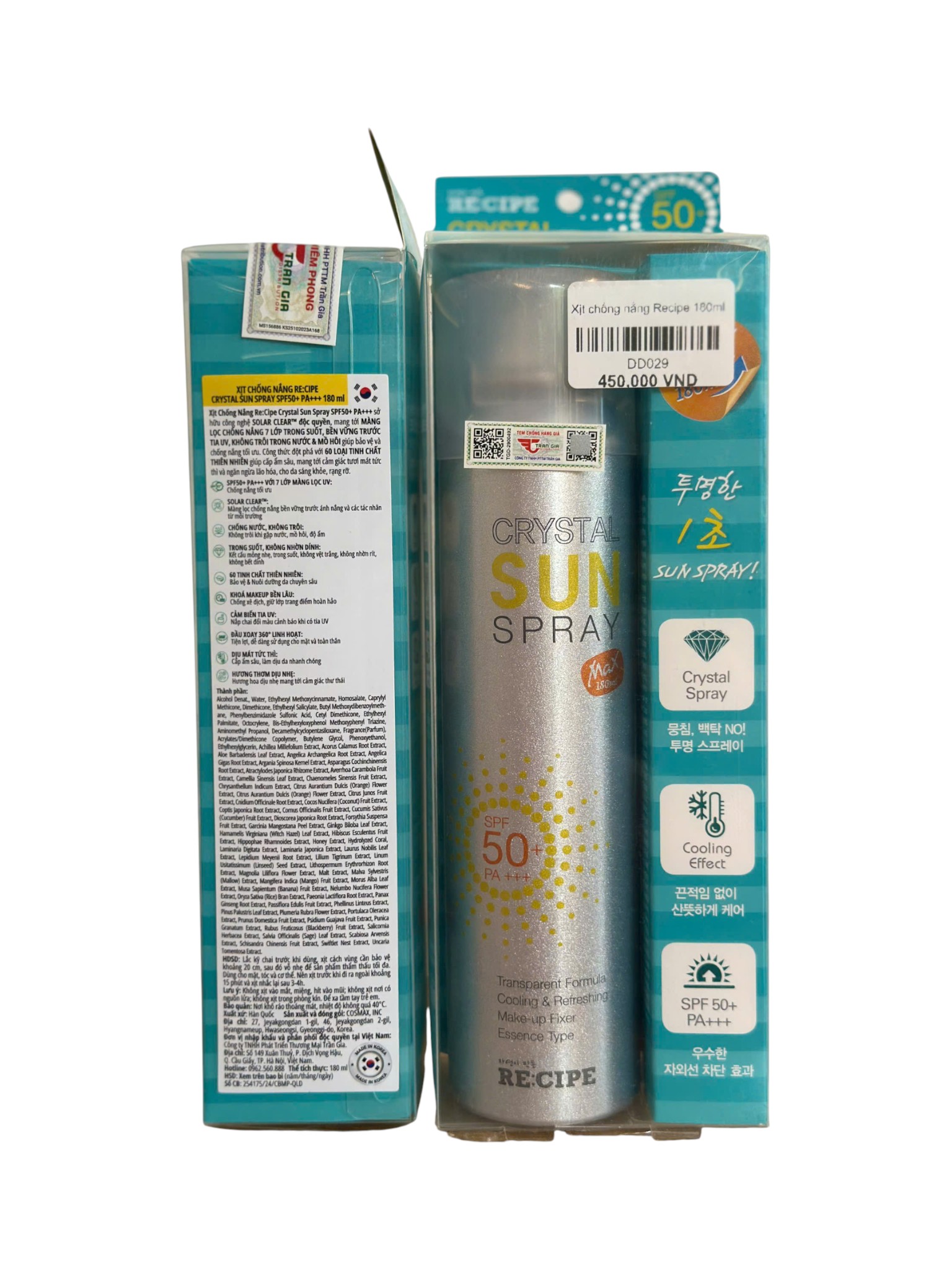 Xịt chống nắng Recipe Crystal Sun Spray với chỉ số SPF 50+ giúp bảo vệ làn da khỏi tác hại của tia UV. Công thức trong suốt, chống nước, phù hợp cho cả da ướt và khô, mang lại cảm giác mát lạnh, tươi mới suốt cả ngày dài.